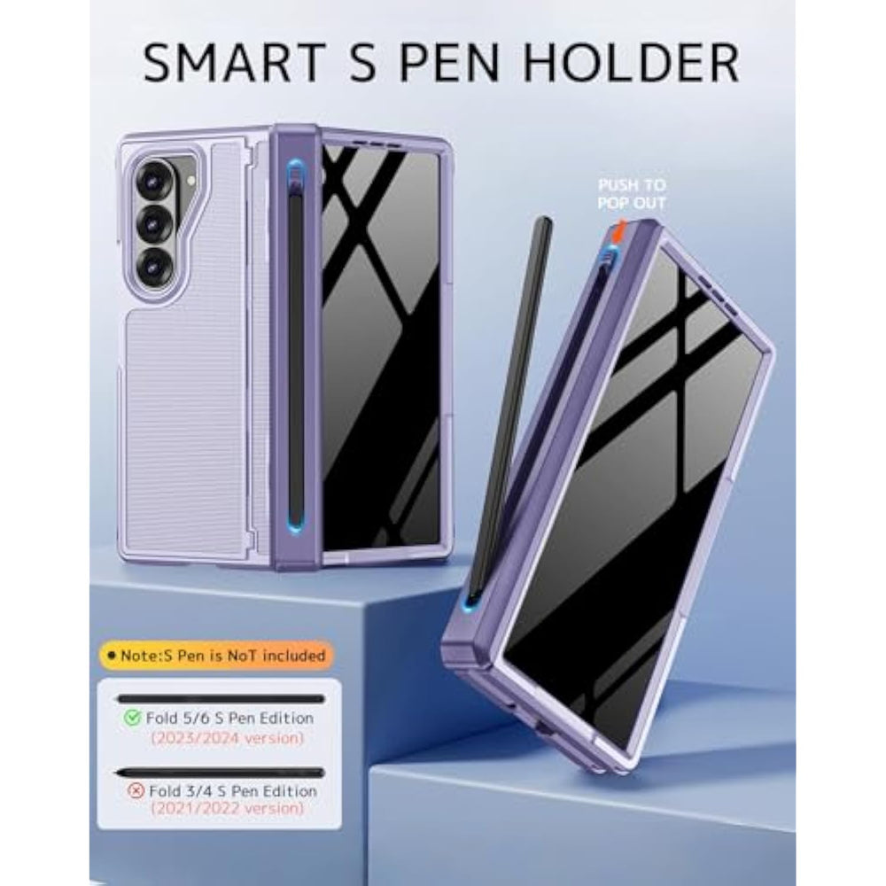 | ?Compatible For Z Fold 6?- Kickstand And S Pen Holder Case Compatible For Samsung Galaxy Z Fold 6 (2024) And The Z Fold6 S Pen Edition Only. Ideal 4 In 1 Structure : S Pen Holder + Hinge Protector + Hidden Stable Kickstand + Privacy Screen Protector, Non Slip Texture Touch And Shock Proof Case For Galaxy Fold 6 Phone. ( Reminder : No Pen Included, Case Is Not Compatible For Any Other Phone Model, Not For Z Fold 3/4/5, Please Confirm The Model Before Purchase). | | ?Thinner S Pen Holder, Not Include Stylus Pen?- This Galaxy Z Fold 6 Case With Pen Holder On The Hinge Which Is Not Bulky, Using A Spring Buckle Design, Simply Press The Top Button To Pop It Out, It Will Automati