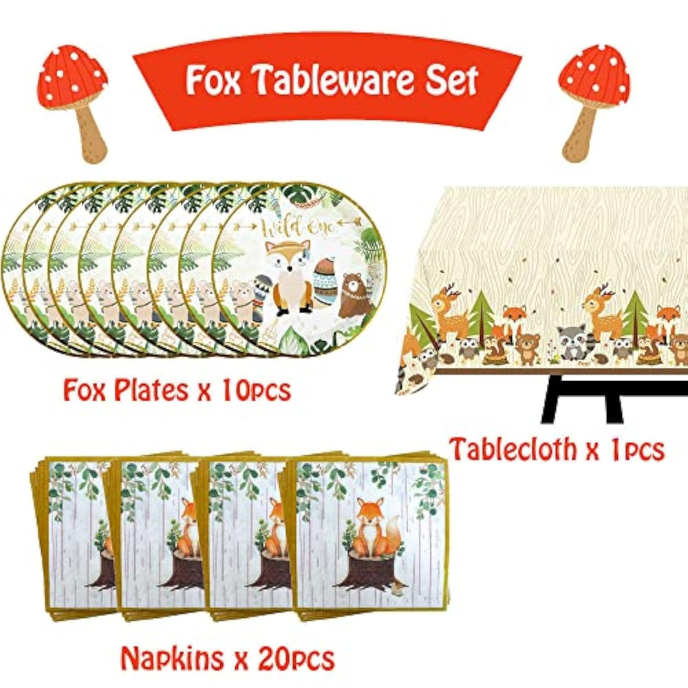 Fox Party Package: Package Includes 1Pcs Happy Birthday Banner, 1Pcs Fox Tablecloth, 2Pcs Big Cartoon Foil Fox Balloons, 12Pcs 12Inch Latex Cartoon Fox Balloons, 12Pcs Fox Cupcake Toppers, 10Pcs Fox Dessert Plates, 10Pcs Fox Napkins | Fox Birthday Party Decorations: Cartoon Fox Theme, Fox Is A Very Intelligent And Intelligent Animal, Beautiful And Cute In Appearance, Quick And Brisk In Movement, Choosing A Fox Theme Will Definitely Make Your Party More Lively And Full Of Topics | Tips For Use: 2 Big Fox Balloons Are Made Of Aluminum Film, This Fox Mylar Balloon Is Durable, Not Easy To Break, Long Service Life, Can Be Filled With Air Or Helium, 12 Cartoon Fox Balloons Are Made Of Latex Material Made, Safe And Harmless, Can Be Placed In A Ventilated Place For 1-2 Days | Easy To Assemble: Fox Banners, Balloons And Cake Toppers Come With Tools, Easy To Diy, You Can Decorate The Party With Your Kids, Make The Time Before The Party Warm And Happy | Wide Applications: Ideal Gift For Fox Woodland Animal Parties, Fox Themed Birthday Parties, Baby Showers, Classroom Parties, Cosplay, Masquerade, Halloween, Christmas, Summer Parties, Woodland Animal Parties, Graduation Parties |