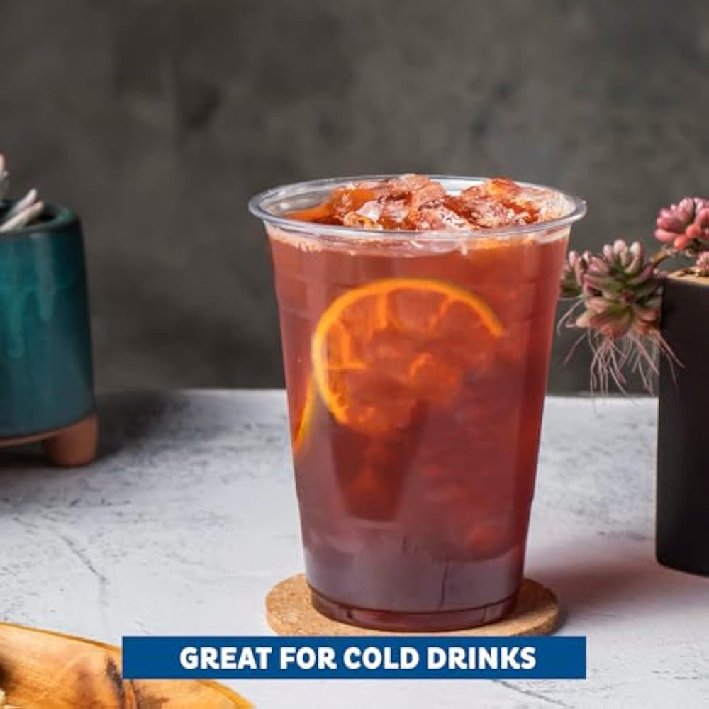 | Perfect Office Party Pack - Our 16 oz 100 Pack disposable cups is transparent, allowing you to add bright colors to the drinks or desserts, making your party unique and colorful. The 16 oz plastic tumbler can be paired with any beverage color to make your party elegant and refined. | | Restaurant Quality - The upgraded PET material makes these 16 oz plastic tumblers more durable and sturdy. Compared to hard plastic cups, PET cups are crack resistant, and the rolled rim is safe for your lips and fingers. Crystal clear, BPA free, no odor, and freezer safe. | | Convenient Lifestyle - The one-off design of these 16-ounce disposable plastic cups makes it easy to clean up after a busy dinner service. It is the perfect solution for elegance and convenient dining in any venue! Cut down on cleaning and dishwashing time and make life more comfortable. | | Versatile Uses - These disposable clear cups provide exceptional clarity to the beverage inside so these plastic coffee cups will make your milkshakes, fruit shakes, iced latte, frappe, sodas, juices, flavored water, bubble tea, and other cold drinks more tantalizing to the eyes. | | Multiple Occassions - These disposable plastic cups are perfect for wine whiskey cocktails and elite cups. Suitable for weddings, birthdays, thanksgiving, Halloween, and Christmas parties, family reunions, and other activities. This set contains 100 clear plastic cups for all guests. | |
