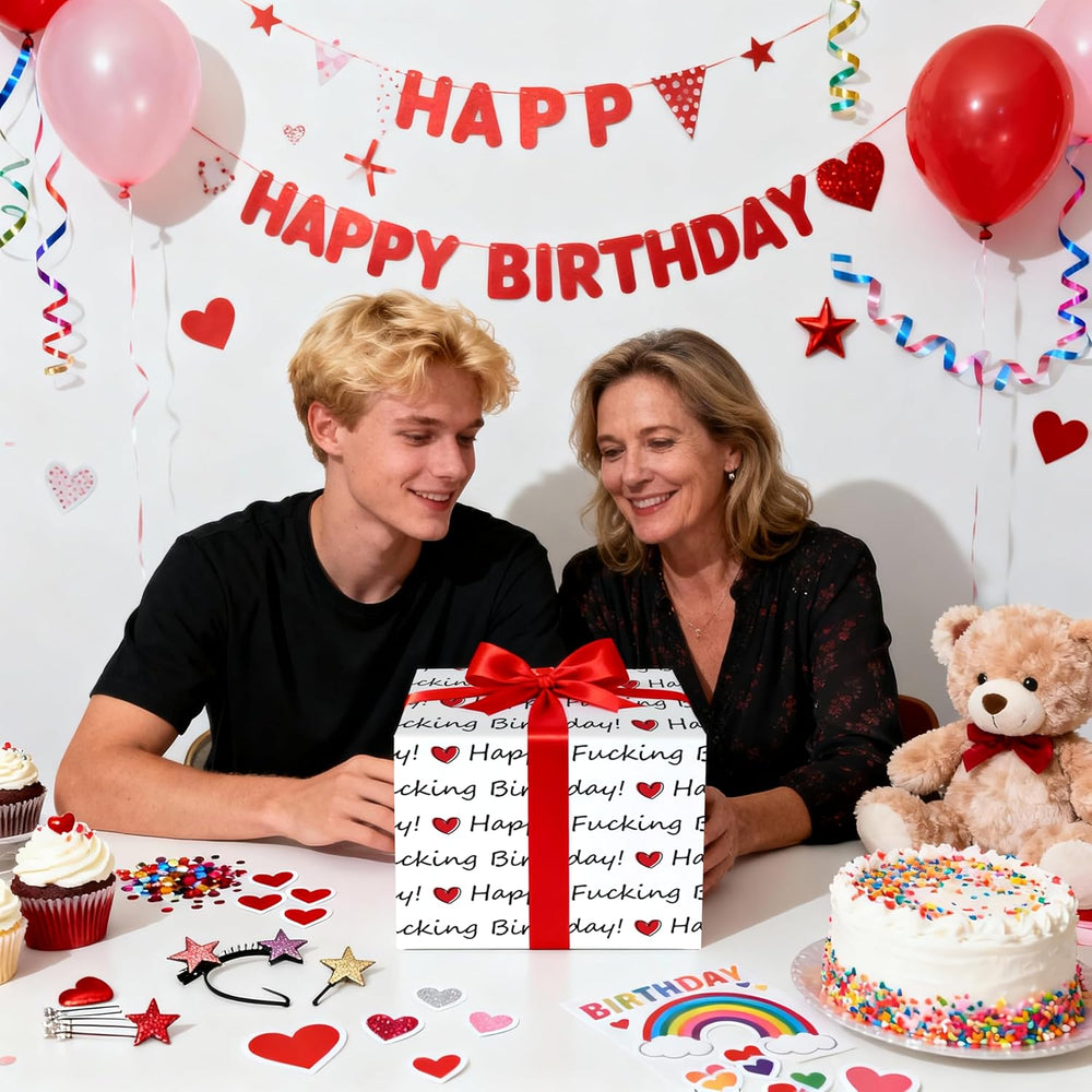 | Bold Funny Adult Birthday Design: Featuring A Repeating “Happy F*Cking Birthday!” Text Paired With Cute Red Heart Icons, This Wrapping Paper Brings Bold Humor And Playful Attitude To Adult Birthday Celebrations. Perfect For Friends, Coworkers, And Anyone Who Enjoys Cheeky Gifts. Mini Roll: Measuring 17 Inches Wide By 16.4 Feet Long, This Wrapping Paper Provides 23.2 Square Feet Of Coverage—Perfect For Wrapping Several Small To Medium-Sized Gifts. Premium Quality: Crafted From High-Grade Coated Paper, This Wrapping Paper Is Thick, Durable, And Tear-Resistant. Each Roll Is Carefully Wrapped In Shrink Film To Prevent Scratches And Dust, Ensuring It Arrives In Flawless Condition. Great For Gag Gifts Adult Parties: Ideal For Milestone Birthdays, 18+, 21St, 30Th, 40Th, And Beyond. Use It For Surprise Parties, Humorous Gift Exchanges, Bachelor Or Bachelorette Celebrations, Or Anytime You Want Your Gift To Get A Big Laugh. Fun Gift Wrap For Close Friends: If Your Gifting Style Is Bold, Humorous, And Full Of Personality, This Paper Delivers. A Memorable And Hilarious Upgrade To Traditional Birthday Gift Wrap—Great For Best Friends, Partners, And Siblings Who Appreciate Fun Packaging.