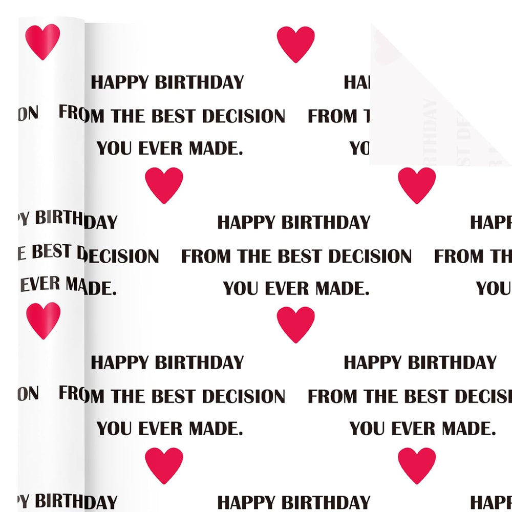 | Perfect Size: Each Roll Measures 17 Inches Wide By 16.5 Feet Long Birthday Design: "Happy Birthday From The Best Decision You Ever Made" Lettering With Red Love On White Paper Design Will Make Your Gift Special And Shining Premium Quality: Created With High-Quality Paper Materials, Thick And Not Easily Tear Or Rip. Item Came With Shrink Film To Prevent Wrapping Paper From Scratches And Reduce Dust Use All Occasion: Perfect For Birthdays, Anniversary, Baby Showers, Party Gift Packaging. It Is Also Very Suitable For Process Projects Quality