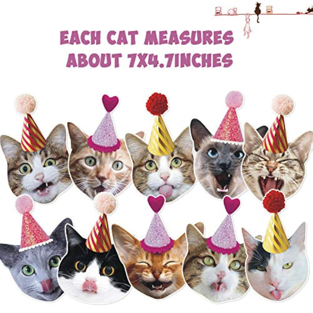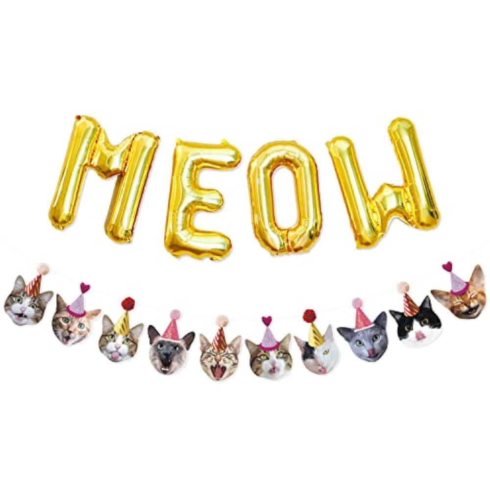 | ?? A Must Cat Theme Party Decoration - Funny Cat Party Garland Is Perfect To Celebrate A Cat Theme Birthday Party, A Special Pet Adoption Or Just Want To Add A Little Extra Dose Of Meowy Fun To Your Day! It Can Also Make A Cute Birthday Gift For Your Favorite Cat Lovers! | | ??Package Includes - A Funny Cat Garland (10 Pcs Different Kinds Of Funny Cat Characters) And Gold Meow Letter Balloons. Meow Letter Balloons Are The Perfect Match Of The Funny Cat Garland. | | ?? Bright Color Kitty Design - Made Of High-Quality Cardstock Paper With Elaborate Kitty Design, The Funny Cat Garland Must Be The Focal Point Of Your Party. If You Are A Cat Lover, You Will Love This Photographic, Printed Cat Garland! | | ?? Perfect Size - The Funny Cat Garland Is Approx 5Ft Long And Each Cat Is Approx 4.7" X 7". Each Letter Ballon Measures Approximately 13.5 Inches Tall Once Inflated. You Can Hang It To Decorate Your Home, Mantel, Wall, Fireplace, Garden Or Anywhere You Want. | | ?? After-Sale Service - If You Are Unsatisfied With Your Purchase Of This Banner, You Can Have A 100% Refund Without Conditions. | |