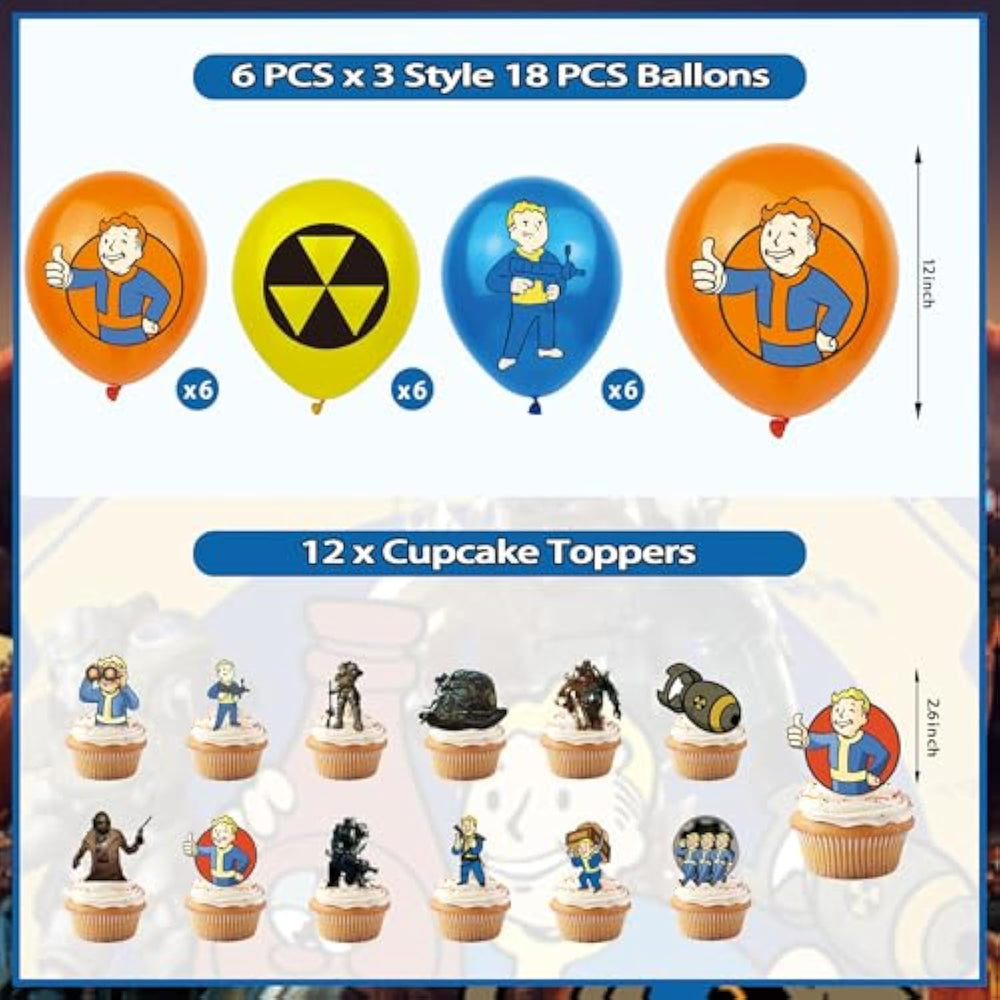| Products Include: 1Set Happy Birthday Banner, 1 Cake Topper, 12 Cupcake Toppers, 18 Latex Balloons With 3 Designs, 50Pcs Theme Stickers. Abundant Styles For You And Your Guests An Unforgettable And Surprise Birthday Party. | | Great Birthday Party Supplies: Game Themed Party Supplies Are Suitable For Family Gatherings, Children'S Party, Or Other Decorations. ?If You Are Going To Throw A Theme Birthday Party, The Decorations Will Definitely Attract People'S Attention. | | Easy To Assemble: All The Product Has Unpre-Assemble, Need To Spend Time To Assemble, Easy To Operate. Adults And Children Can Complete It Independently. Because The Balloon Is A Brand-New Product Made Of Pure Natural Latex, It Will Have The Unique Smell Of Latex. It Can Be Used Normally After Placing The Balloon In A Ventilated Place For 1β2 Days. | | High Quality: The Party Kit Are 100% Safe And Non-Toxic. The Party Banners And Cupcake Toppers Are Made Of Quality Card Stock, Vibrant Colors, Safe For Children. Banners And Cake Decorations Use 300G Cardboard, Which Is Thicker And Stronger Than Ordinary Paper. The Balloon Adopts An Upgraded 3.2G Latex Balloon, Which Is Stronger Than Ordinary 2.8G Rubber Balloons. | | Quality Assurance: If You Have Any Questions About The Party Kits, Please