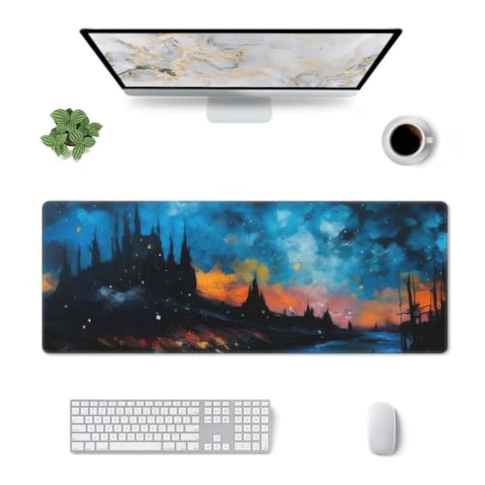 | ?Extended Size? The Mousepad Is Large Enough, 31.5''X 11.8'' ( 800Mm X 300Mm X 3Mm), Will Fit Your Desktop Perfectly And Provide Perfect Movement Space, Offers Plenty Of Room For Gaming Or Office Works All While Protecting Your Desk, Applies To All Types Of Mouse Keyboards And More. | | ?Superior Control Surface? Features Smooth Low Friction High Thread Count Woven Silk-Processed Lycra Surface. The Ultra-Smooth And Breathable Fabric Ensures Fast Movement While Maintaining Excellent Precision, Consistent Accurate Mouse Control. Cool Mouse Pad Gaming Is Perfect Choice For Studying, Working, Gaming. | | ?Stable Non-Slip Rubber Base? The Dense Anti-Skid Nature Rubber Base Offers Extra Heavy Grid To Ensure The Mouse Mat Stay Securely In Place. Excellent Adhesion Helps Prevent Unwanted Pad Sliding Effectively When Making Fast Mouse Movements Or Typing. Large Mouse Pad For Desk Is Available For Any Flat, Hard, Tabletop Surface. | | ?Durable And Comfortable Material? Material Is Thick And Feels Soft In The Hand , Which Can Help To Muffling Noise When You Type On The Pads Heavily . Our 3 Mm Thick Full Desk Mousepad Gives Your Hands Ease And Made Of High Quality Material Which Offers Comfortable Gaming Or Working. High Quality Edges Are Finished So As To Not Fray, Deformation And Degumming In Prolonged Use And Comfortable For Your Wrists And Hands. | | ?Water Resistant Coating? The Fine-Textured, Heat-Resistant And Spill-Proof Material Effectively Prevent Accidental Damage From Scratches, Stains, Spills, Heat And Scuffs. Long Mouse Pad Is Easy To Keep Clean With Just A Wipe Of A Damp Cloth For Continuous Use. Big Mouse Pad Provides A Protective, Waterproof, Colorful Surface For Your Home Office Desk. | |