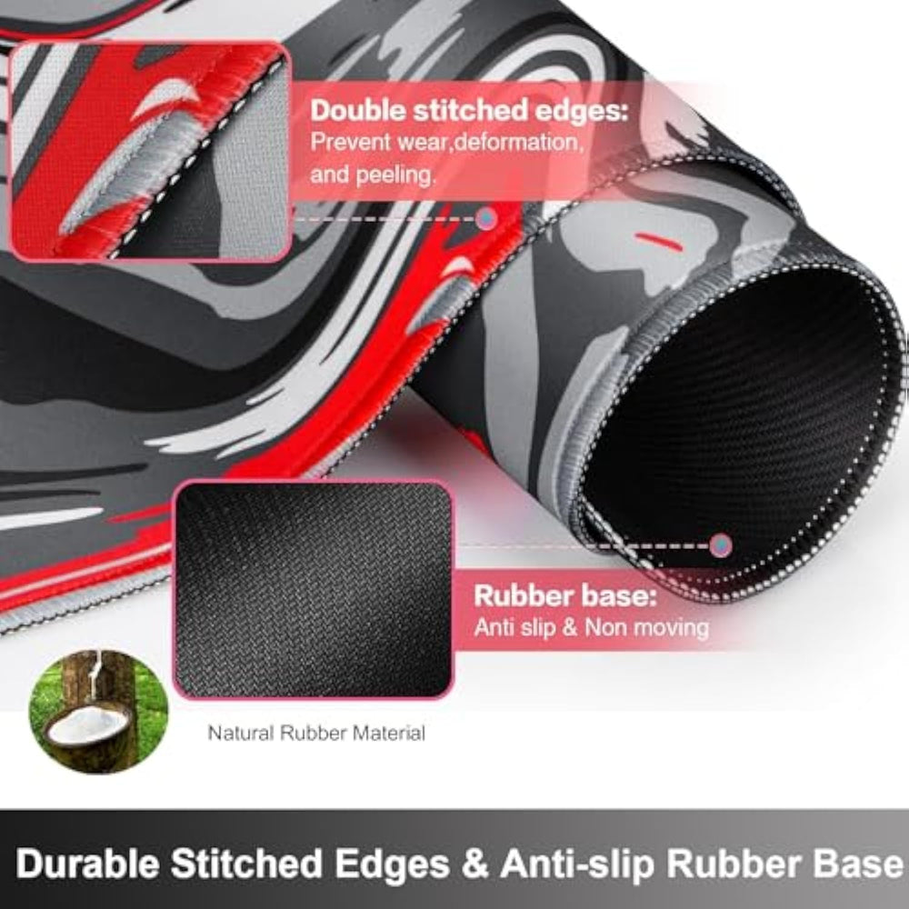 | ?Large And Extended Size?The Size Of This Xxl Large Mouse Pad Is 31.5×15.7 Inch,Which Is Big Enough To Fit Your Full-Sized Keyboard, Mouse, Laptop,Or Other Item On The Desk,Providing More Space For Professional Gaming Or Office Work. Besides,You Can Also Use This Extended Mouse Pad As A Desk Pad,Writing Pad,Platform Protection Mat. Keep Your Desk Clean And Uncluttered. | | ?Ultra Smooth Surface?This Extended Mouse Pad Is Easy To Be Cleaned By Wet Rag Or Washed,No Deformation And Much Durable Than Other Ones. Covered By The Superfine Fabric, The Mouse Pad Has A Soft And Smooth Surface, Helps You Track The Mouse Fast And Accurately, Maximally Enhances Your Gaming/Working Experience. | | ?Non-Slip Rubber Base?The Bottom Base Of The Full Desk Mouse Pad Is Made Of Good Natural Rubber,Which Is No Harm To Human Heath.It Will Not Have Unpleasant Smell Compared With Other Wrist Rest Pads. Designed With Dense Textured Rubber, The Mouse Pad Will Grip You Desk Firmly, Avoid The Random Movement And Provide Stable Operation For Your Mouse/Keyboard. | | ?Washable And Stitched Edges?The Water Resistant Coating Effectively Prevent The Damage From Spilled Water Or Drinks. This Mouse And Keyboard Mat Is Easy To Be Cleaned By Wet Towel Or Washed,Durable Enough For Long Time Using. Double Stitched Edges Protect The Mouse Mat From Wear,Deformation,Fraying. | | ?Friendly