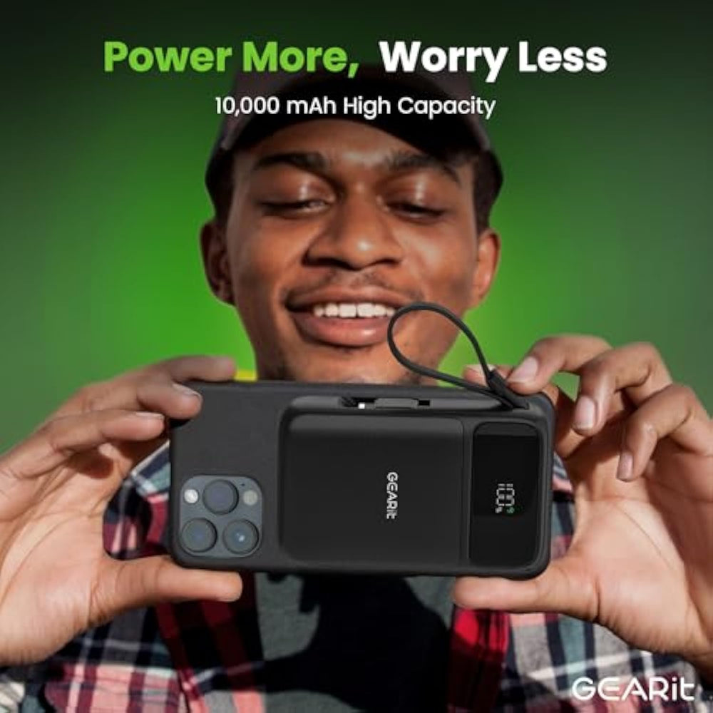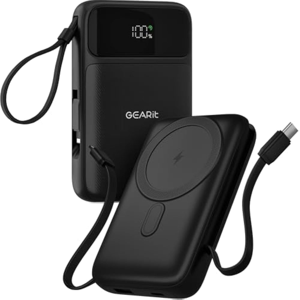 | Power Your Entire Arsenal with One Charger - Transform any space into a portable charging station. Our 10000 mAh power bank has the ability to juice up 5 devices at once through wireless charging, built-in cables, and USB ports for flexibility. | | Never Hunt for Cables Again - Experience freedom with our portable charger. The integrated USB-C and Lightning cables on this power bank double as a carrying strap. It is also MagSafe compatible for a truly wireless charging experience. | | Stay Informed, Stay Powered - Take control of your charging experience. This compact battery pack includes an intelligent LED display that shows exactly how much power remains, ensuring you're never caught off guard when you need it most. | | Your Perfect Travel Companion - Lightweight and compact yet mighty, this 10,000mAh portable power bank fits easily in your bag at just 5" x 3.5" x 0.75" while packing enough juice to keep your devices running all day long. | | Trusted Technology at Your Fingertips - Rest easy knowing your power bank and devices are protected by advanced safety features while charging at optimal speeds, compatible with Apple iPhone, Samsung Galaxy, Google, and leading brands. | |