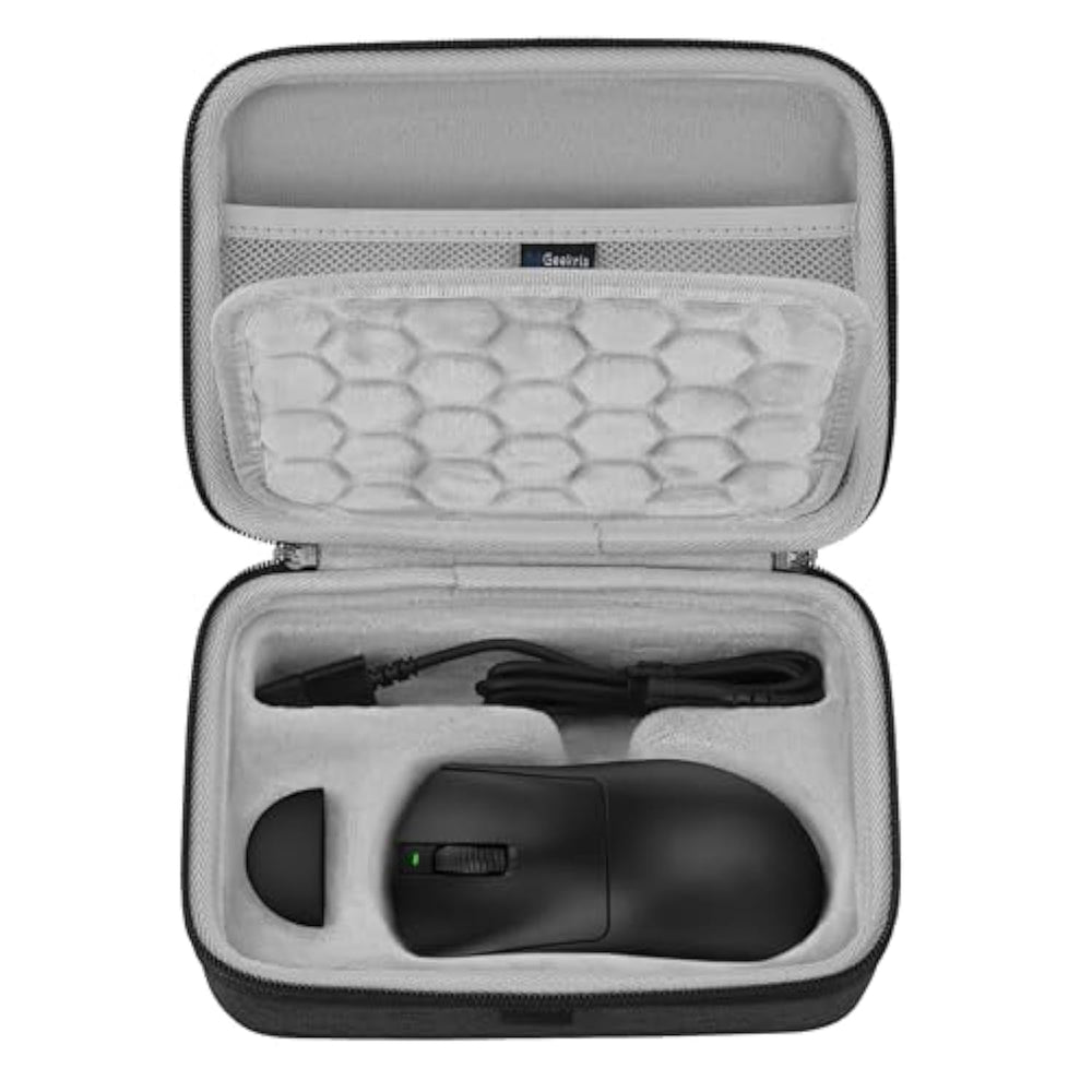 | This product is specially designed for the Razer DeathAdder V4 Pro mouse and is equipped with a soft inner lining that can provide maximum protection. | | Engineered ultra-hard shell protects against the mouse and accessories from crushes, impacts or drops. | | The top mesh pocket of the mouse case can store data cables and other small accessories,while the bottom can store the mouse and its receiver. | | Storage case external dimensions: 7.6 x 5.3 x 2.7 in. (19.5 x 13.5 x 7 cm). | | Compatible with Razer DeathAdder V4 Pro. | |