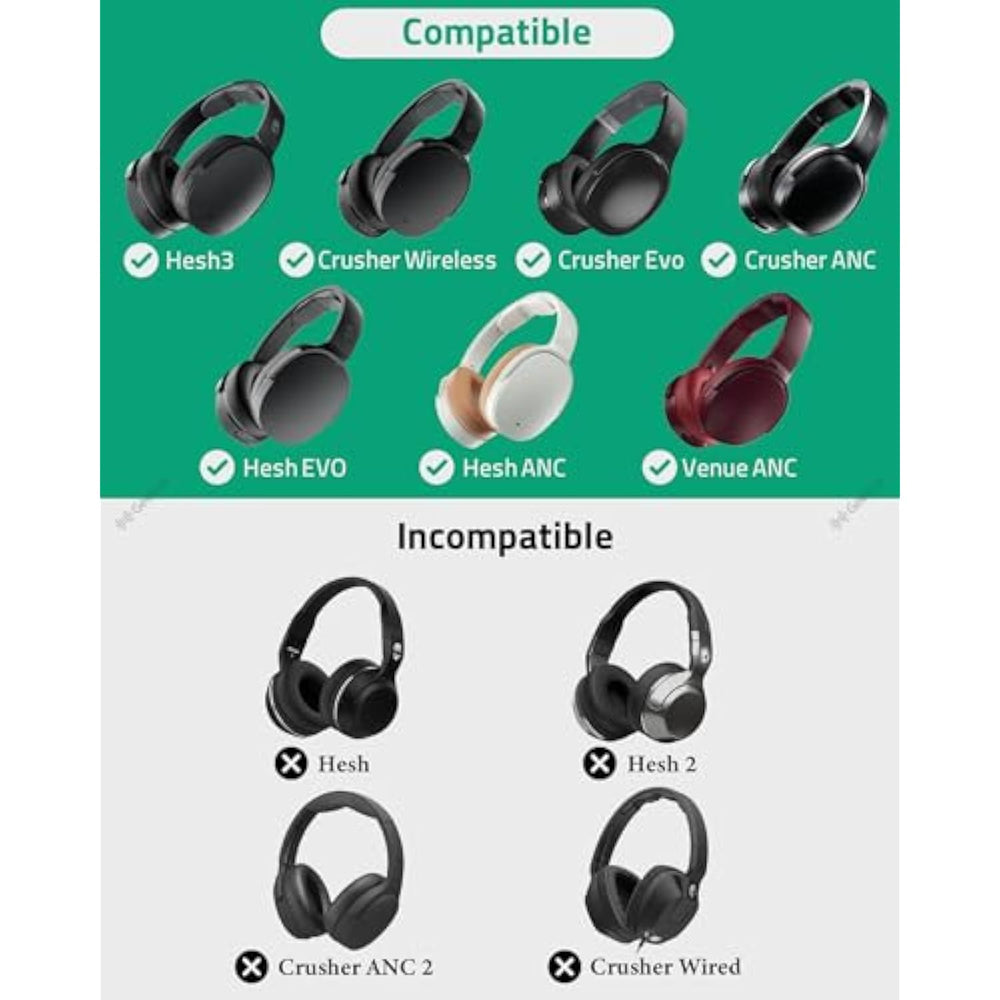 | Replacement earpads made with high quality memory foam and protein leather. | | Replace your worn-out earpad cushions / ear cover / ear cups. | | Give your headset a new earpad. Make it a brand new look. | | Durable and long lasting, quality made ear pads. Compatible with Skullcandy Crusher Wireless, Crusher Evo Wireless, Crusher ANC, Hesh3 Wireless, HeshEVO HeshANC, Crusher Evo Collina Strada, Crusher Evo Budweiser Limited Edition earpads. | | Will also fit other brands and models, check dimensions of your headphones. | |
