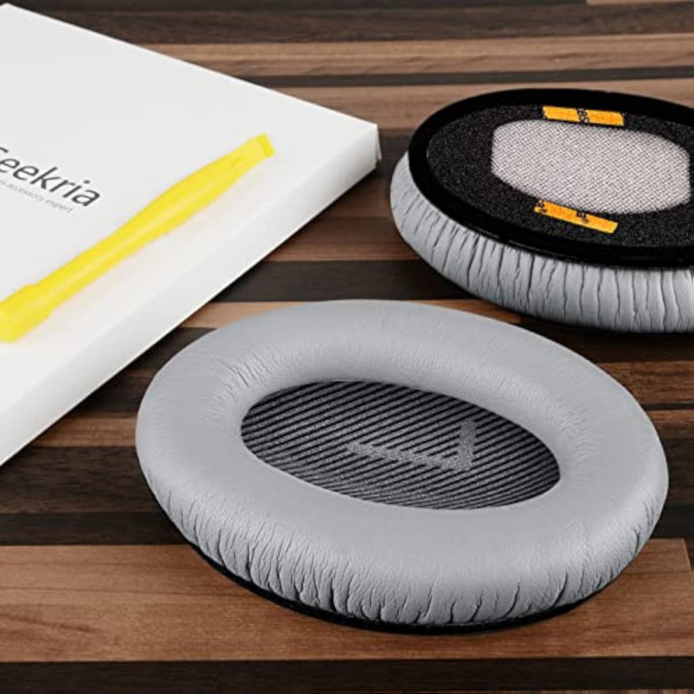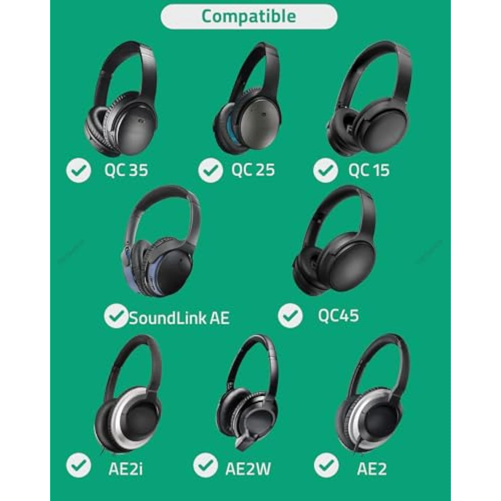 | Replacement earpads made with high quality memory foam and protein leather . | | Replace your worn-out earpad cushions / ear cover / ear cups. | | Give your headset a new earpad. Make it a brand new look. | | Durable and long lasting, quality made ear pads. Compatible with Bose QC45, QC35, QC35ii, QC35iiGaming, QC2 QC15 QC25, AE2, AE2i, AE2w, SoundTrue, SoundLinkAroundEar, SoundLinkAroundEar2, SoundLinkAE2, QuietComfort SE, QCSE, New Quietcomfort earpads. | | Package Contents: Replacement Ear Cushions x 2. | |
