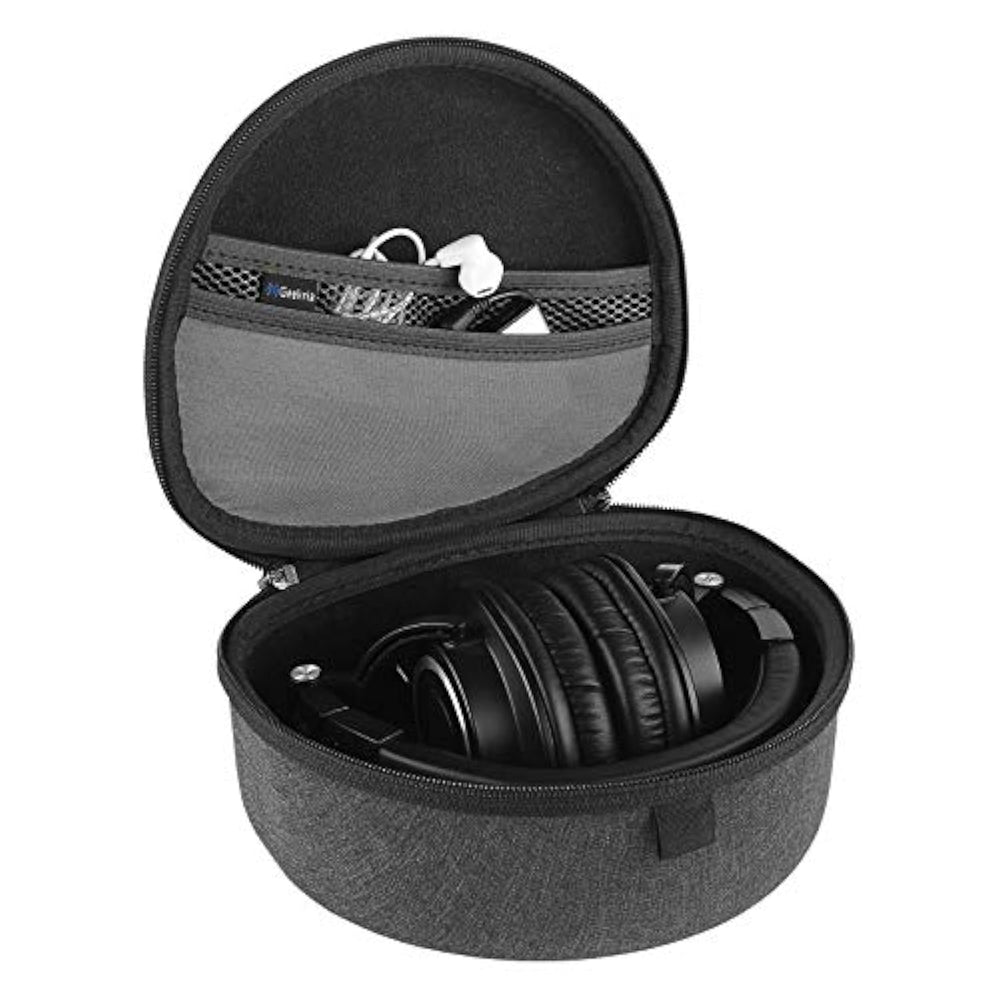 | Maximum compatible headphone dimensions (inside): 7.6 x 6.4 x 3.5 inches. Compatible with many wired / wireless headphones. | | Engineered ultra-hard shell protects against drops, impacts or crushes. Soft inner maximize headphones protective in the case. | | Internal mesh pocket conveniently stores cables, cords, chargers, AMP, earpads, adapters and other accessories. | | Compatible with Audio-Technica ATHM70X, ATHM50XWH, ATHM50XBT2, ATHM50XBT, ATHM50XBB, ATHM50X, ATHM50, ATHM40X, ATHM30X case. A good replacement or upgrade of the original headphones case. | | If the case doesn't fit or break within one year, please