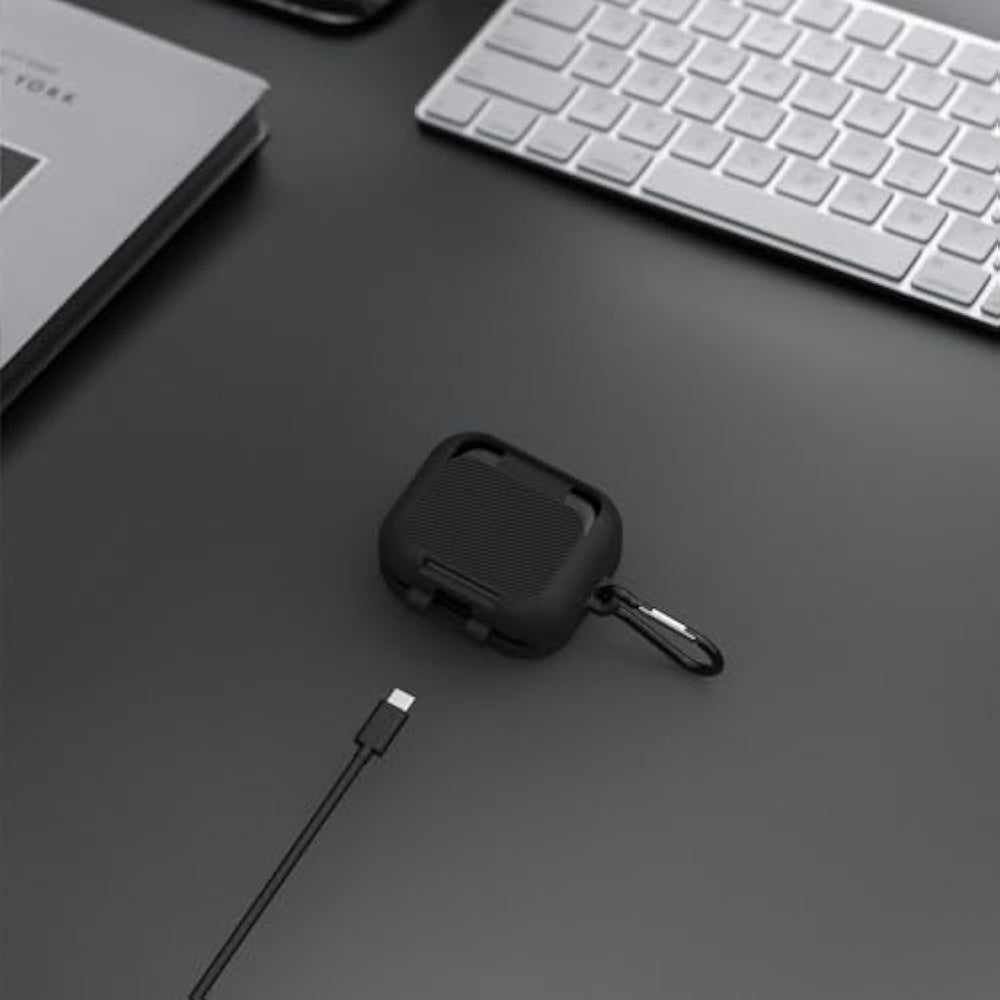 | Compatible with Soundcore by Anker P30i truly wireless earbuds. | | All-around coverage in a minimal and simplistic design. Built to stay shock absorbent and scratch resistant. | | Charging port accessible, front LED visible, support wireless charging. | | Adhesive strips inside for a more secure fit. Portable with keychain hook. Special cutout for charging your earbuds without removing the cover. | | Package includes: 1 x earbuds case cover, 1 x keychain carabiner. | |