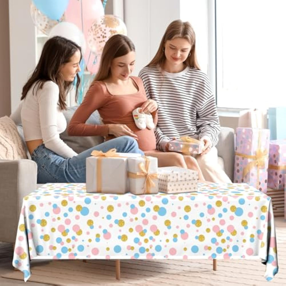 | Gender Reveal Table Cloths: You Will Receive 3 Pieces Of The Gender Reveal Plastic Tablecloths, Enough For Meeting Your Baby Shower Decor Needs; The Boy Or Girl Table Cover Measure About 70.8X42.5 Inch, Making It The Suitable Size For Most Party Tables. Celebrating Your Gender Reveal Or Baby Shower Party With These Pink And Blue Table Covers | | Baby Gender Reveal Decorations: The Gender Reveal Party Supplies Decorated With White Base Background, Pink, Blue And Gold Dots Elements Are The Perfect Gender Reveal Party Decorations And A Great Way To Create Inspirational Table Decorations With Friends And Family. That Will Easily Catch The Guest Eyes And Let Them Have A Better Sense Of Participation | | Baby Shower Table Cover For Boy Girl: The Boy Or Girl Gender Reveal Table Clothes Are Made Of Quality Thick Plastic Material That Do Not Tear Easily, Sturdy, Waterproof, Non-Toxic And No Odd Smell, Well Protecting Your Dining Tables, The Ideal Choice For Your Gender Reveal Theme Party Or Baby Shower | | Gender Reveal Disposable Tablecloth: The Waterproof Plastic Tablecloth Is Easy To Clean Up, You Only Need To Unfold The Gender Reveal Disposable Tablecloth And Cover It Directly On The Table So That You Can Enjoy The Party With Your Families And Friends. After The Gender Reveal Party, Just Wrap The Trash With This Disposable Tablecloth And Throw It Away | | Party Decorations Supplies: These Gender Reveal Party Tablecloth Is A Perfect Complement To Your Party Decorations. Our Gender Reveal Party Supplies Are Suitable For Gender Reveal Theme Party, Baby Showers, Boy And Girl Gender Reveal Party, Baby Gender Reveal Party, He Or She Theme Party Etc,. They Can Be Perfectly Matched With Your Other Gender Reveal Decorations Such As Gender Reveal Party Tablecloths, Gender Reveal Party Banners,Gender Reveal Party Bags,Gender Reveal Party Backgrounds | |