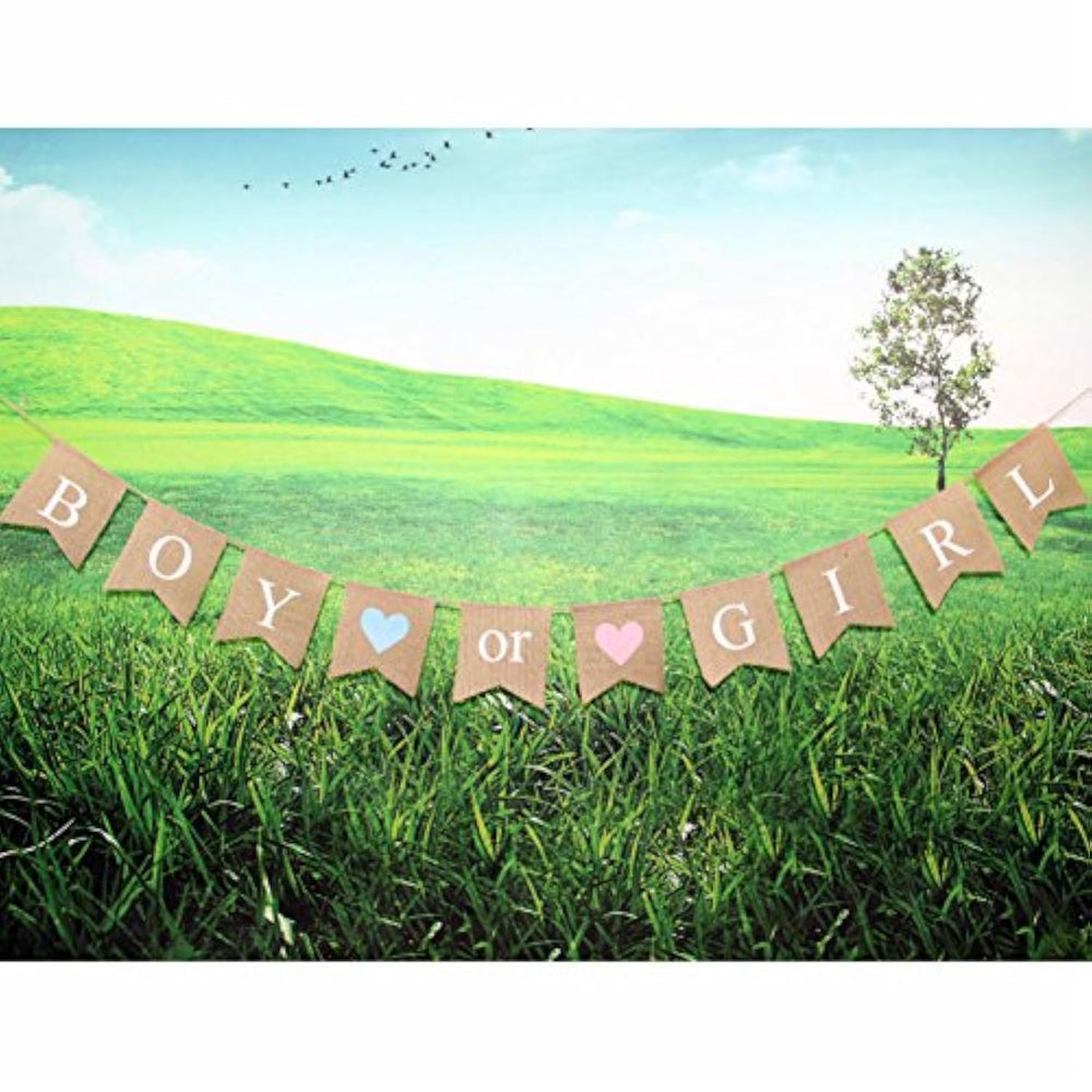 | Material: Burlap Fabric Is Handmade For A Unique Look. | | Dimensions: 280Cm Long Banner With 10 Flags Measuring 14 X 15Cm Each. | | Decor: Use As A Gender Reveal Party Decoration Or Baby Shower Decor. | | Hanging: Includes Extra Twine For Easy Hanging And Measures 9.18 Feet Long. | | Occasion: Use As A Photo Prop Or Decor For A Gender Reveal Party Or Baby Shower. | |