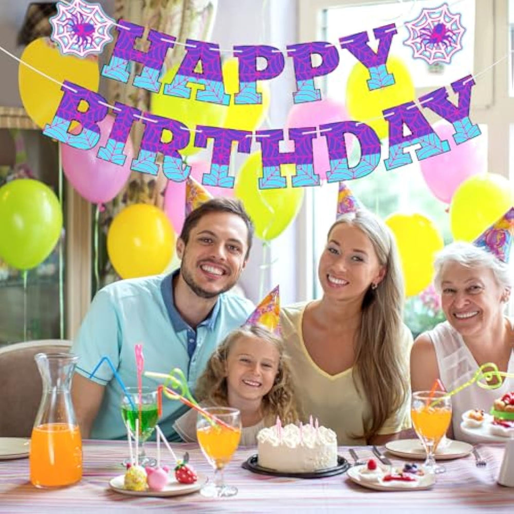 | Spider Themed Party Decorations: This Spider Birthday Banner Features Movie-Related Elements, Combines Spider Elements With Letters And Adopts Cute Spider Theme Pattern And Bright Purple Blue And Pink Design, Which Is Eye-Catching And Attracts People'S Attention, Adding Fun To Birthday Celebrations | | Quality Material: Made From Quality Card Paper, This Ghost Spider Birthday Banner Decoration Is Reliable And Durable, Not Easy To Break Or Damage, No Smells, Fade-Resistant, With Clear Printing, Creating The Ideal Party Atmosphere And Meeting Your Party Needs | | Pre-Strung And Reasonable Size: The Purple Spider Theme Birthday Banner Is Pre-Assembled, Will Save Your Time, Convenient To Hang And Store. You Can Also Adjust The Distance Between Letters According To Your Preference. Each Spider Web Flag Sign Is Approx. 17 X 14 Cm/ 6.7 X 5.5 Inches, The Rope Length Is Approx. 1.85M/ 6.07 Feet | | Wide Applications: Spider Backdrop For Birthday Party Is Suitable For Birthday Party, Cosplay Parties, Animation Party, Spooky-Themed Parties, Halloween Bash, Surprise Parties, Etc. This Purple Spider Web Banner Decoration Is Sure To Impress Your Guests | | Multi Occasions: Nice Spider Birthday Party Decorations For Party Supplies, You Can Hang It On Many Places, Like Wall, Window, Fireplace, Tree Branches, Living Room, Garden, Street And More Indoor And Outdoor Occasions | |