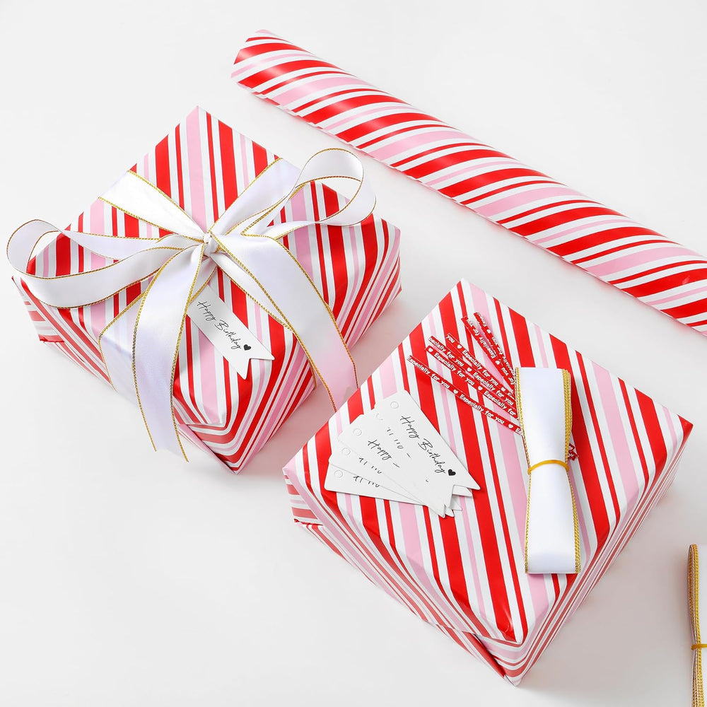 | Vibrant Design: Our Gift Birthday Wrapping Paper Features A Striking Pink Red And White Striped Pattern, Perfect For Adding A Festive Touch To Any Gift For Party And Holidays. Enough Sized Rolls: Get More Value With Our 17 Inch X 32.8 Feet Wrapping Paper Roll. Ideal For Various Gift Sizes, Ensuring You'Re Always Prepared. A Must-Have For Efficient, Stylish Wrapping. Easy To Work With: This Wrapping Paper Is Easy To Cut, Fold, And Manipulate To Create Beautifully Wrapped Gifts, Ensuring A Smooth And Enjoyable Gift-Wrapping Experience. Premium Material: Crafted From Premium Paper, Our Gift Holiday Wrapping Paper Is Durable And Easy To Work With, Providing A Smooth And Elegant Finish For Your Presents. Versatile Use: Ideal For All Occasions, This Wrapping Paper Can Be Used For Christmas, Party, Holiday, Birthday, Valentine'S Day, Anniversary, And Other Celebrations, Making It A Versatile Addition To Your Gift-Wrapping Supplies.