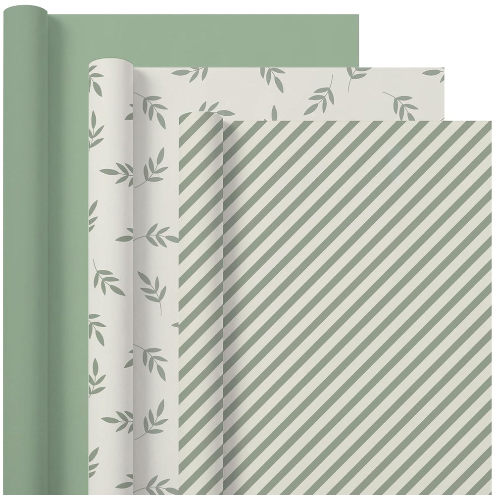 | Set Of 3 Elegant Gift Wrapping Paper Rolls: Includes 3 Rolls Of Gift Wrapping Paper, Each Measuring 17 Inches Wide And 9.8 Feet Long—Perfect For Wrapping Small To Medium-Sized Gifts. Features 3 Coordinated Designs: Solid Sage Green, Green Beige Stripes, And Leafy Green Prints Stylish Versatile Designs: Minimalist And Modern Designs In Sage And Neutral Tones Add A Refined Touch To Every Gift. Whether It’S For Birthdays, Weddings, Or Holidays, These Prints Blend Beautifully With Any Celebration Theme Premium Easy To Use: Crafted From Thick, Tear-Resistant Paper With A Smooth Finish That Folds Cleanly Great For Diy Craft Projects: Not Just For Gifts—This Birthday Wrapping Paper Set Is Also Ideal For Paper Crafts, Scrapbooking, Flower Wrapping, Classroom Projects, And Creative Diy Decorations Perfect For Any Occasion: Make Every Gift Special With This Charming Wrapping Paper Set. Suitable For Weddings, Baby Showers, Birthdays, Valentine’S Day, Mother’S Day, Christmas, And More—For Kids, Women, Men, And All Ages