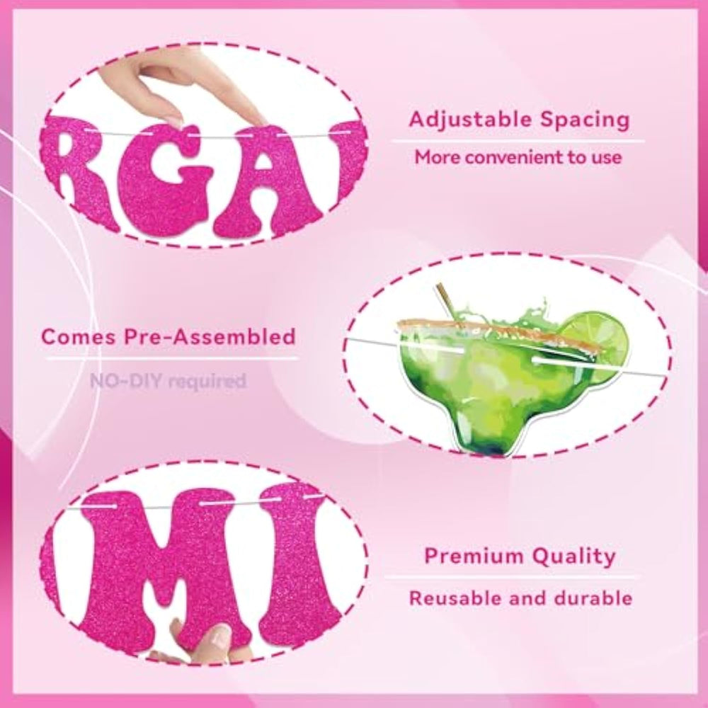 | Material: Eco-Friendly Paper, Surface-Attached Glitter, Perfect For A Margarita Bachelorette Party. | | Hot Pink Glitter Margarita Bachelorette Banner Bunting Decorations, Mexican Birthday Bachelorette Party Supplies, A Big Hit For Your Party. | | This Banner Is So Suitable For Margarita Themed Bachelorette Party, Margs Matrimony Bachelorette Party, Photo Studio, Etc. Perfect For Your Margs Matrimony Wedding Birthday Party Decorations. | | String It Yourself: The Banner Will Come With Letters That Have Pre-Cut Holes To String The Banner. | | Unique Design: Meticulously Hand Designed, We Made Sure Our Hot Pink Glitter Margarita Bachelorette Party Banners Were Super Premium And One-Of-A-Kind. Perfect For Your Margs Birthday Party And Will Set Your Birthday Celebration Apart Too! | |