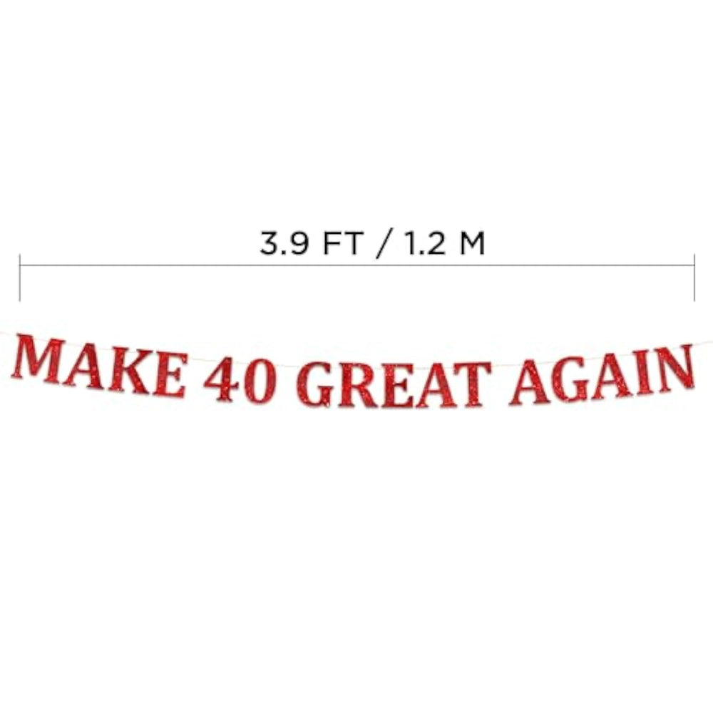 | Banner Comes Pre-Strung | | Make 40 Great Again! The Beautiful, Red Glitter Accents Matches The High Quality Lettering And Will Definitely Catch The Attention Of Your Loved Ones. . | | So Many Uses: Use It For A 40Th Birthday, Anniversary, Or Retirement Party! This Banner Is Sturdy But Not Heavy And Meant To Be Reused. | | Size: Banner Is Petite And Measures Approximately 3 Feet. First Great Above A Dessert Table Or Fireplace Mantle. | |