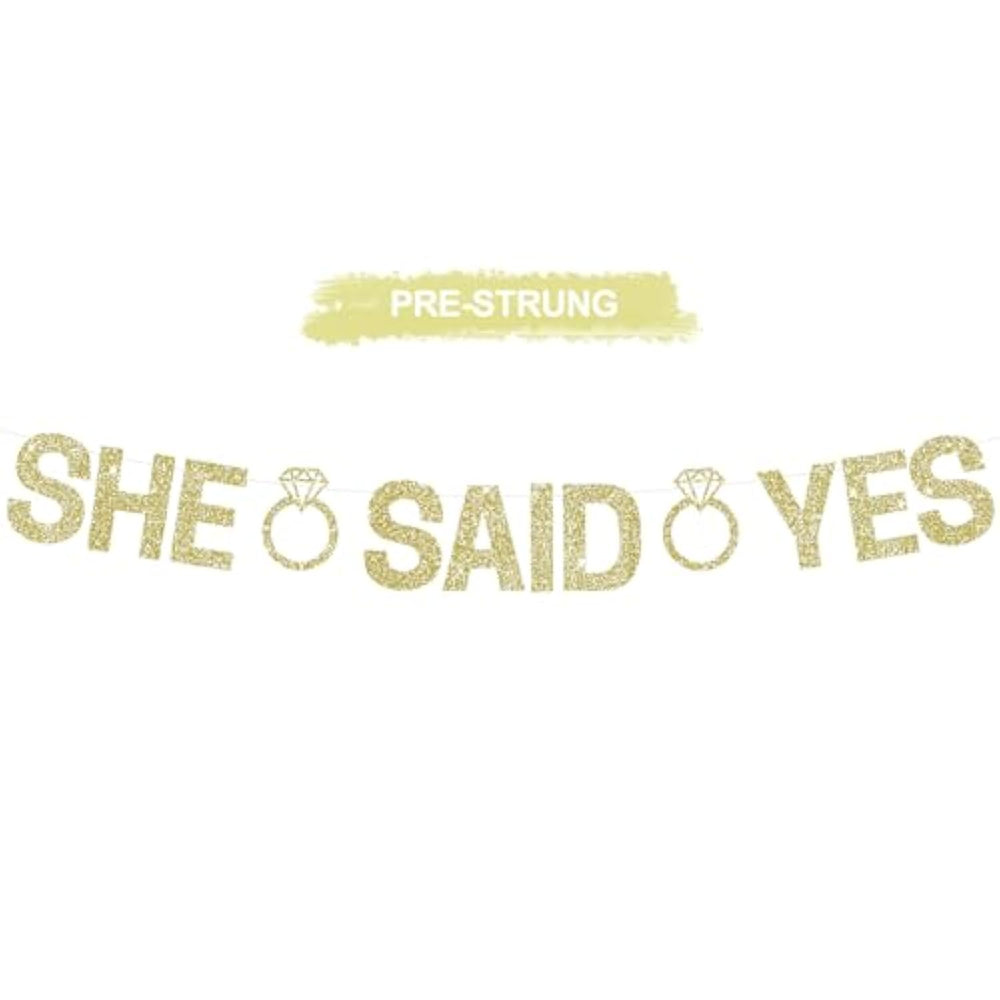 | ?What You Will Get? "She Said Yes" Shiny Banner Consists Of 1Pcs Banners, Shiny Color And Beautiful Design Can Decorate Your Party Well. | | ?Time Saving?Our Banner Did Not Need Diy.No Need To Worry About Constantly Adjusting Your Banner! We Designed All Our Pre-Strung Banners To Have Smaller Punch Holes; The Letters Will Stay Put And Won'T Slide Down The Strand. Just Position As Desired And Letters Will Stay, Even At An Angle! All You Have To Do Is To Hang It And To Prepare For Your Party! | | ?Reliable Material?Our No Diy Banner Sign Is Made Of High Quality Card Stock Material, Which Is Sturdy And Durable As Well As Lightweight, Also Is Easy To Hang Which Meant To Be Reused. | | ?Wonderful Design?Party Decorations Are Perfect For The Special Someone Celebrating Their Big Day By Adding Color To Your Event. The Gapping Of Letters Is Adjustable. It Is Versatile Over Different Widths. | | ?Multiple Applications?You Can Hang It On The Fireplaces, Walls, Branch, Ceiling Or Table To Fit Your Other Party Decorations; Also, You Can Attach It Individually On Wall Or Decorate Dessert Tables, Backdrops And The Overall Party Space; Whatever, The Banner Can Make Everyone A Big Hit. | |