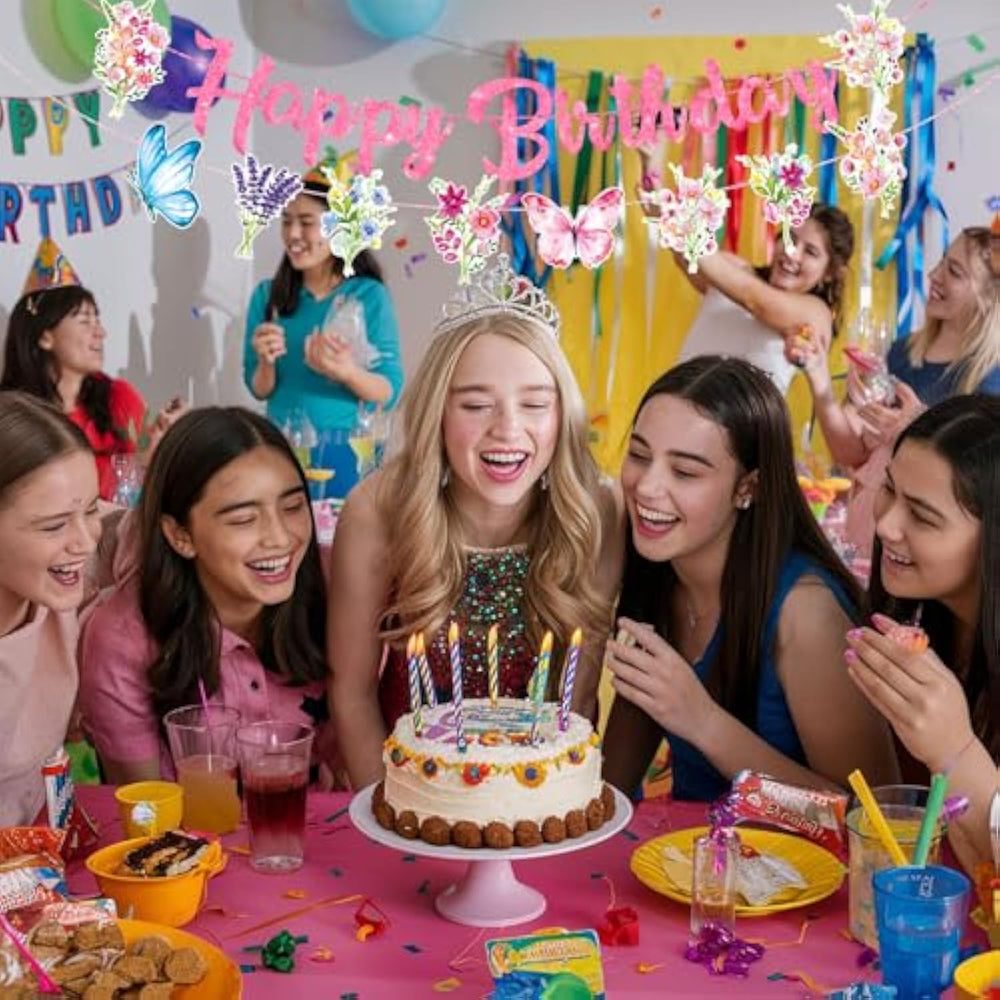 | Two Strings Happy Birthday Banner Set: This Set Includes Two Pre-Strung "Happy Birthday" Banners, Each Featuring A Sparkling Glittery Pink Font Along With A Beautiful Printed Wildflower And Butterfly Design. Perfect For Adding A Vibrant And Elegant Touch To Birthday Parties, Baby Showers, Or Springtime Celebrations For Women And Girls. | | Glittery Pink Text Design: The "Happy Birthday" Letters Are Made With Glitter Cardstock, Creating A Sparkling Effect That Catches The Light And Enhances Your Decorations. The Design Beautifully Combines A Soft, Glittery Pink Font With Vibrant, Printed Floral And Butterfly Accents. | | Easy To Hang And Set Up: Both Banners Come Pre-Strung, So Setting Them Up Is Quick And Simple. Easily Hang Them Across Walls, Doors, Or Party Tables To Bring A Festive Touch To Any Birthday Or Special Event. | | Eye-Catching Printed Design: Featuring Colorful Wildflowers And Butterflies, This Banner Adds A Playful And Whimsical Touch To Your Decor. The Floral And Butterfly Patterns Are Printed With Vivid Colors To Complement The Glittery Text, Creating A Harmonious Look. | | Ideal For Multiple Occasions: Perfect For Birthday Parties, Baby Showers, Spring Parties, Or Any Celebration Where A Bright And Cheerful Atmosphere Is Desired. This "Happy Birthday" Banner With Its Floral And Butterfly Design Is A Great Way To Celebrate In Style. | |
