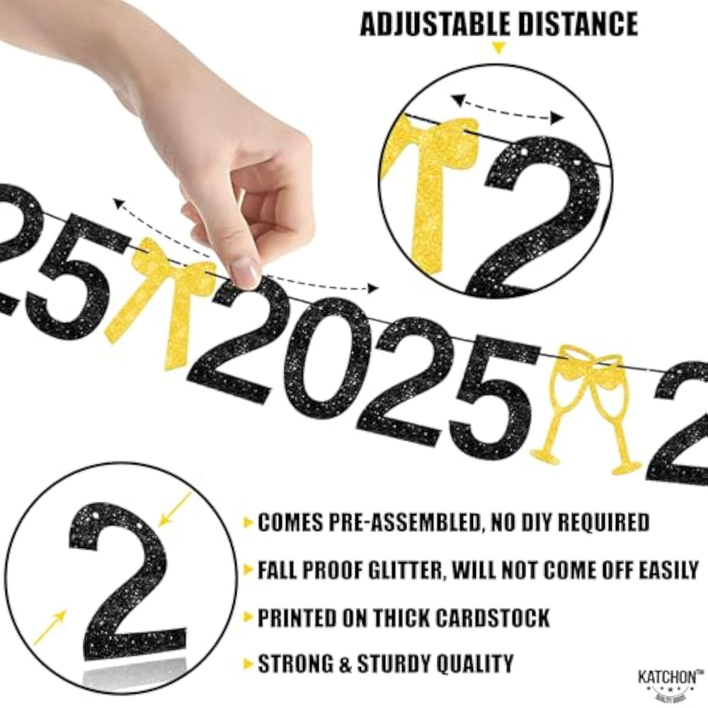 Large Size : 10 Feet | Glitter Black And Gold Happy New Year Banner - Looking For A Luxurious New Years Eve Decorations 2025 This Happy New Year Banner With Star Banner Is A Perfect Decor For Happy New Year Decorations 2025 . The Happy New Years Banner 2025 Comes With 10 Feet Size 2 Strings. This Shining Happy New Year 2025 Banner Is Long Enough To Cover Any Area You Wish. Make This Banner A Part Of Your New Years Eve Party Supplies 2025 And Achieve Festivity To Your Party Decor. | No Diy Required | Pre-Strung | Ready-To-Use – This Luxurious Glitter Black And Gold Happy New Year Sign 2025 Can Help You Save Your Time And Effort As 2025 Banner New Year Is Delivered Pre-Stung And Preassembled, This Party Add-On Is Hassle-Free And Easy To Install! Just Hang In Any Corner Of Your Home. Our Happy New Year Banner Is A Perfect Blend Of Elegance And Excitement For 2025 New Years Decorations, Hang New Years Banner 2025 At Entrance Or As A Happy New Year Backdrop In Your Home. | Reusable Sturdy | Multipurpose - This Happy New Year Banner Is A Real Saver. This Re Usable And Sturdy Glitter New Years Eve Party Banner 2025 Can Also Be Used For Next Year’S New Year Party Decorations. You Can Hang The 2025 New Year Banner On The Door As A Welcome Sign For Your Guests, Or On The Wall As A Backdrop For Pictures, It'S A Must-Have Addition To Your New Years Eve Party Supplies 2025. Let The Countdown To A Brighter Future Begin With Happy New Year Decorations 2025. | A Confident Choice | Create Your Shining Corner– We Are Very Confident With The Quality, Durability And Incredible Style Of Our Sturdy Happy New Year Banner. The Rich, Shimmering Colors And High-Quality Materials Ensure It Will Sparkle And Shine Throughout The Celebration. We Are Happy To Help You Regarding This Purchase, If It Doesn’T Meet Your Expectations. We Assure You That This Stunning 2025 New Years Eve Party Supplies Will Bring You Smile And Joy On Your 2025 New Years Decorations. | Picture-Perfect | Stylish Trendy New Years Decorations 2025 - Show Off Your Decorative Skills With This Elegant, Perfect Reusable Nye Banner Decorations For The New Years Party. Click Numerous Instagram Pictures With Your Friends And Let The World Know That You Had An Unforgettable Nye Decorations 2025 With This Black Hanging New Years Eve Banner 2025. This Happy New Year Party Supplies Is A Must Have Choice For You New Years Eve Decorations, Powered By Brnd.Me |