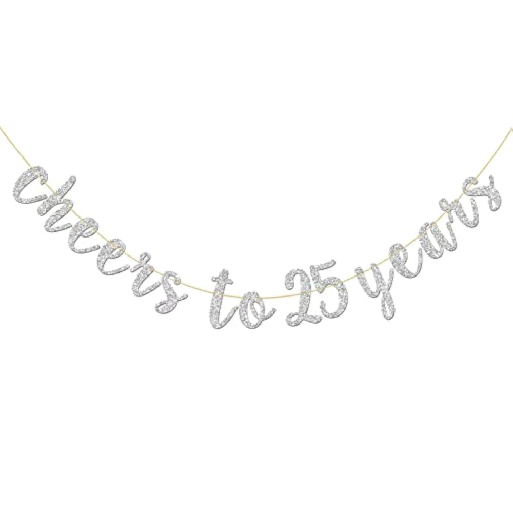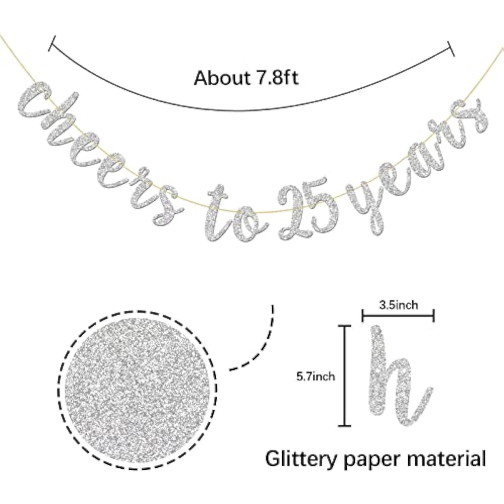 Perfect For Your Anniversary, Birthday, Wedding Anniversary Party. | Cheers To 25 Years Banner Silver Glitter Letters.Cardboard Is Very Thick And Shiny, Which Will Be Even More Shiny Outdoors Or Under The Sun. | The Banner Needs You To Connect It, But It'S Very Simple. It Only Takes You A Few Minutes To Complete The Operation. It'S Worth It ! | Party Decoration Banners Are Suitable For All Kinds Of Occasions. They Can Be Used In Gardens, Kitchens, Homes, Offices, Etc. | Fill Your Cart With Items, If You Have Any Questions About The Product, Please Feel Free To Inquire! |