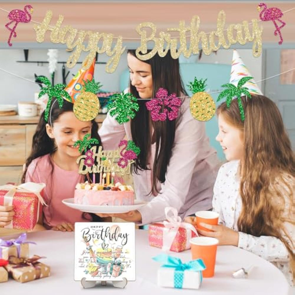 | 1.Hawaiian Birthday Party Decorations Banner Garlands The Package Includes 1Pcs Hawaiian Happy Birthday Banner And 1Pcs Flamingo Pineapple And 1Pcs Glitter Happy Birthday Cake Toppers. They Will Add More Fun And Tropical Atmosphere For Your Birthday Party. | | 2 . Material: Ropical Happy Birthday Banner Made Of High-Ranking Powder Card Stock, Perfect Decorations For Summer Birthday Party. Make Birthdays Approaching Summer Extra Special. | | 3. Glitter Design Hawaii Birthday Party Decorations, Hawaiian Luau Banners Are Specially Designed For Birthday Parties And Contain A Large Glitter Banner Printed With The Words Happy Birthday. The Golden Happy Birthday Message And Glitter Happy Birthday Cake Toppers With Flamingo Pineapple Palm Leaf Coconut Tree Hibiscus Flower Are Sure To Leave You With A Party You Won'T Forget. | | 4. Easy To Assemble - This Happy Birthday Banner Decorations Set Has 3Meters Ribbon, You Just Need To String The Letters Of Happy Birthday And Flamingo Pineapple Palm Leaf Coconut Tree Hibiscus Flower, Each Cards Are Cautiously Made And Can Be Moved To Your Ideal Distance. | | 5. Tropical Theme Baby Shower Supplies, Our Hawaiian Birthday Party Banners Nice For Summer Hawaiian Birthday Party, Luau Party, Hawaiian Baby Shower, Tropical Theme Party And Other Celebrations. You Can Easy To Hanging On Your Doors, Windows, Walls Or Trees. | |