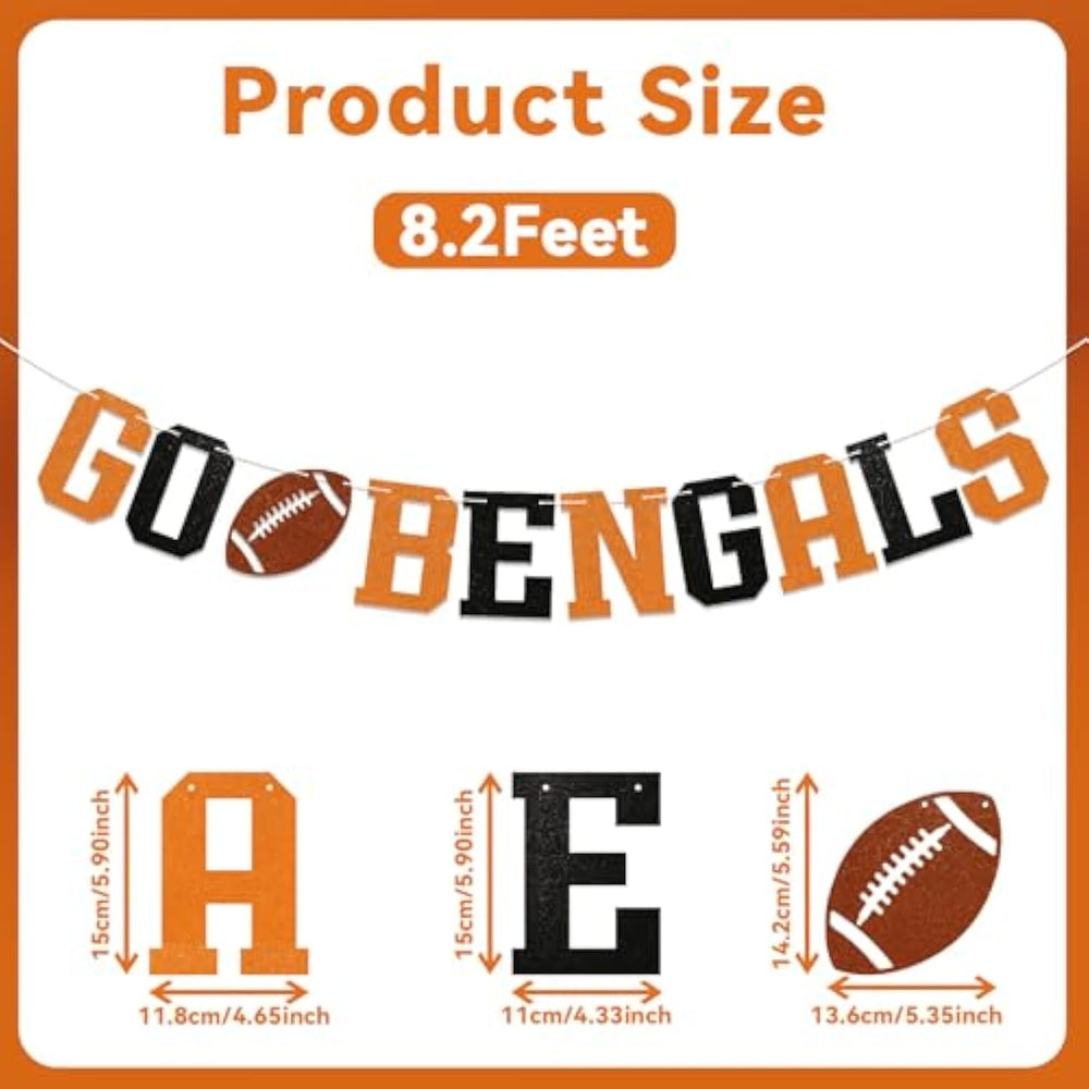 | Material: Eco-Friendly Paper, Surface-Attached Glitter, Perfect For A Football Themed Party. | | This Go Bengals Bunting Decorations, Funny Football Bengals Party Party Supplies, A Big Hit For Your Party. | | This Banner Is So Suitable For Football Party Decorations, Photo Studio, Etc. Perfect For Your Football Game Day Party Decorations. | | Pre-Strung: The Glitter Go Bengals Banner You Receive Is Already Strung On A 6-Foot String, So All You Have To Do Is Hang It Up And Get Your Party Started! | | Unique Design: Meticulously Hand Designed, We Made Sure Our Go Bengals Banners Were Super Premium And One-Of-A-Kind. Perfect For Your Football Birthday Party And Will Set Your Game Day Celebration Apart Too! | |