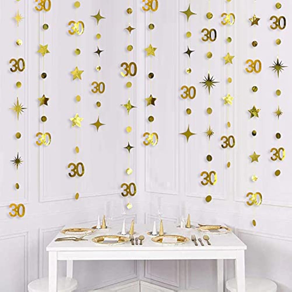 Package Includes: 4 Strings Of 11.5 Feet/3.5 Meters Gold Number 30 Sparkling Twinkle Star And Circle Dots Garlands , Totally Is 46 Feet/14 Meters. | Environmental Material: Our Gold 30Th Birthday Decorations For Women/Men Birthday Anniversary Garland Are Made With High Quality Double Sided Metallic Paper Cardstock, Carefully Hand-Made And Connected With Thread, Durable And Reusable In Nice And Bright Colors. | Adorable Party Decor: Our Gold Number 30 Circle Dot Twinkle Star Garland Kit Is Perfct For Her/Him 30Th Birthday Party, 30Th Birthday Decorations, 30Th Birthday Party Supplies, Beers And Cheers To 30 Years Party, 30 And Fabulous Birthday Decorations For Women, Im 30 Bitchs Party, Dirty 30 Birthday Decorations, 30Th Anniversary, Wedding, Bridal Shower, Birthday, Engagement, Barbecue, Home, Christenings, Fetes, Etc. | Easy To Assemble: Unravel The Entire String And Hang It Up With Care To Avoid Twist. Our Star And Circle Dot Garlands With Figure 30 Can Be Cut To Different Lengths. Just Hang It On The Walls,Windows, Gift Tables, Dessert Tables, Fences, Tree Branches, Hallway And Other Indoor And Outdoor Places You Like. | Product And