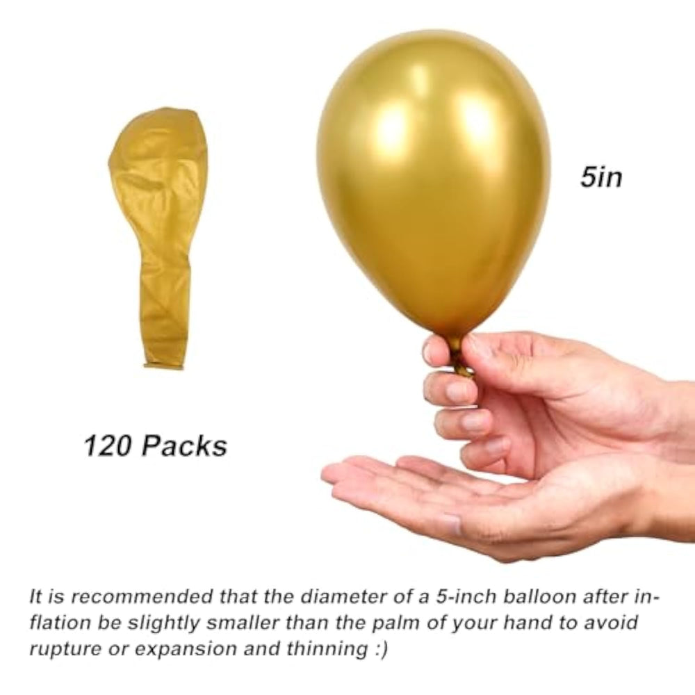 Package Contains: 120 Pieces Of 5Inch Small Metallic Gold Balloons. Sufficient Quantities Can Meet Your Various Needs. | Premium Quality: Made Of Good Quality And Atoxic Latex, The Latex Balloons Can Use Air And Helium. Please Do Not Inflate The Balloon More Compare With 90% To Avoid Sudden Popping. | Easy To Use: The Gold Balloons Could Be Used To Make A Vivid Gold Chrome Balloons Garland Arch Or A Brunch Of Balloons As A Beautiful Balloons Backdrop. They Could Be Toys For Children As Well. | Beautiful Color: The Metallic Gold Color Is Bright And Shiny, Which Looks Like Real Gold Metal And Makes Your Party More Elegant And Memorable. It Is Suitable To Use Alone Or With Other Colors Or Sizes Of Party Balloons. | Warm Tips: Please Do Not Overfill, Avoid Sunburn And Overheat, Or The Balloons Might Pop. 5-Inch Balloons Are Not Recommended To Be Inflated With An Electric Pump. |