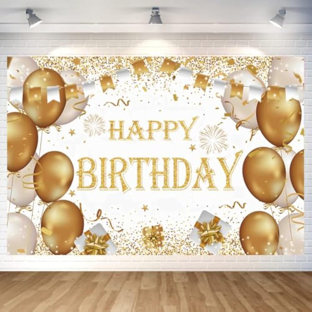 | ?Exquisite Design?The Happy Birthday Backdrop Banner Is Featured With Gold Elements, Print With Eye-Catching Details And Colors, Which Help You Light Up Your Party And Leave A Deep Impression For Guests. | | ?Giant Size?The Size Of Gold Happy Birthday Backdrop Banner Is 70.8 X 47.2 Inch, Which Is Large Enough For Birthday Party Decorations And Photography, Adding An Extra Touch To Your Birthday Party. | | ?Easy To Assemble?The Gold Backdrop Comes With A 20 Feet String, Easy To Hang Through The Copper Grommet. Suitable For Indoor Or Outdoor Wall, Playground, Etc. | | ?Durable Material?The Gold Happy Birthday Backdrop Banner Is Made Of Durable Polyester Fabric, Which Is Easy To Clean, Foldable, Lightweight And Convenient For Your Next Time Use. | | ?Memorable Party Décor?It Is An Exquisite Birthday Party Banner Poster, Also A Good Addition To Birthday Party, Creating An Amazing Atmosphere For Your Party. | |