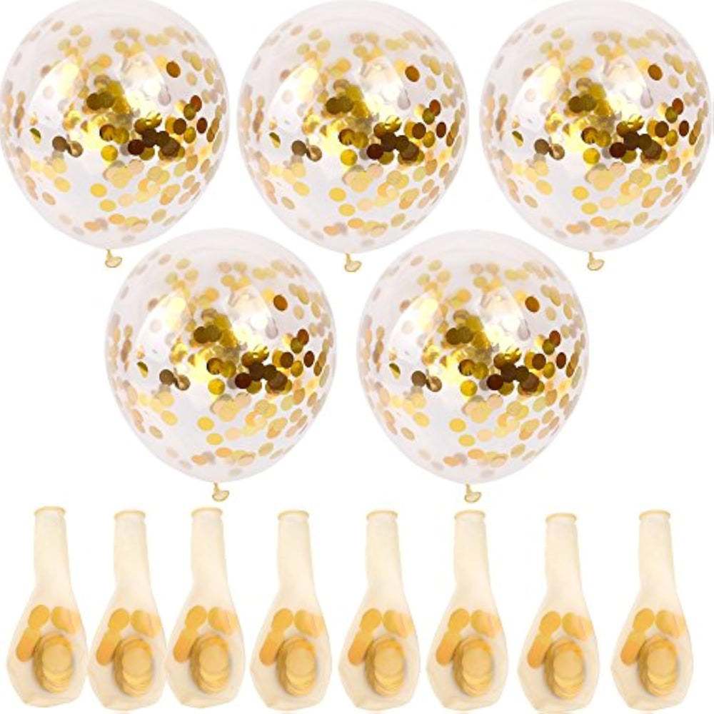 Add a touch of sparkle to your event with this 20-pack of 12" Gold Confetti Balloons. Pre-filled with shimmering gold foil confetti (1.5 cm diameter), these balloons create a stunning effect perfect for weddings, proposals, birthdays, anniversaries, and more. For best results, spray a bit of water inside before inflating—this helps the confetti stick to the balloon walls for a gorgeous floating look. Made from high-quality latex, these balloons inflate up to 12 inches and add a romantic, festive vibe to any celebration. Pop them for a dazzling gold confetti shower!
