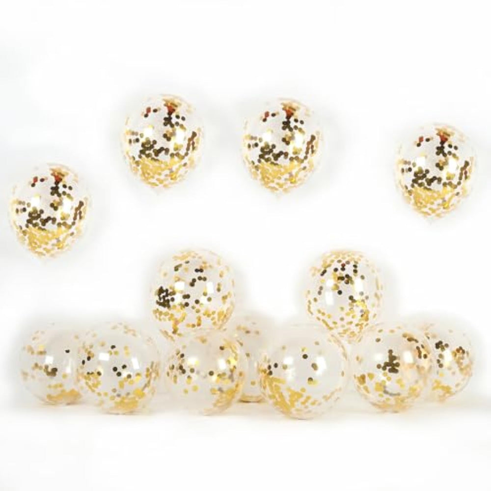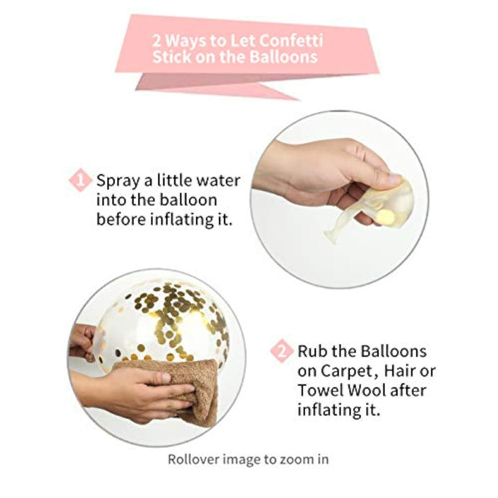 | You'Ll Get 50 Pcs Gold Confetti Balloons?12In Clear Balloons With Gold Confetti Inside. The Rubber Band At The Uninflated Balloon Mouth Is Only Used To Prevent Sequins Leakage. Please Do Not Use It To Tighten The Inflated Balloon. | | High Quality Confettifilled: These Confetti Balloons Use Premium Thick And Durable Latex Material,100% Natural Material, Non-Toxic. The Uninflated Clear Balloon Is Yellowish But The Bigger You Blow It Up, The More Transparent It Will Be. Each Iridescent Balloon Is Pre-Filled With 0.6-Inch Diameter Confetti. We Use Foil Confetti Rather Than The Paper Confetti To Make It Sticks To The Balloon Much More Easily And More Bright. | | Multi Use Occasions:Assorted Color Latex Balloons Are Great For Birthday Party Arch Supplies, Graduation Party, Engagement Balloons, Wedding Celebration, Baby Shower, Bridal Shower, Rainbow Party, Unicorn Party, Carnival Festivals, Home Decorations, Christmas, New Year'S Eve, Anniversary And Other Special Celebration Occasions. | | The Confetti Balloons Can Filled With Both Helium Or Air, Shake The Confetti Balloons And You Can Gently Rub Them On The Hair (The Best Way )Or Silk, Wool. This Will Generate Friction And The Confetti Will Stick To The Side. This Will Make The Balloons Look More Beautiful. After Parties, You May Pop The Balloons And Let The Confetti Fall All Over Which Increase Lots Of Fun To The Party! | | The Best Service:If You'Re Unsatisfied With This Item For Any Reason,Please