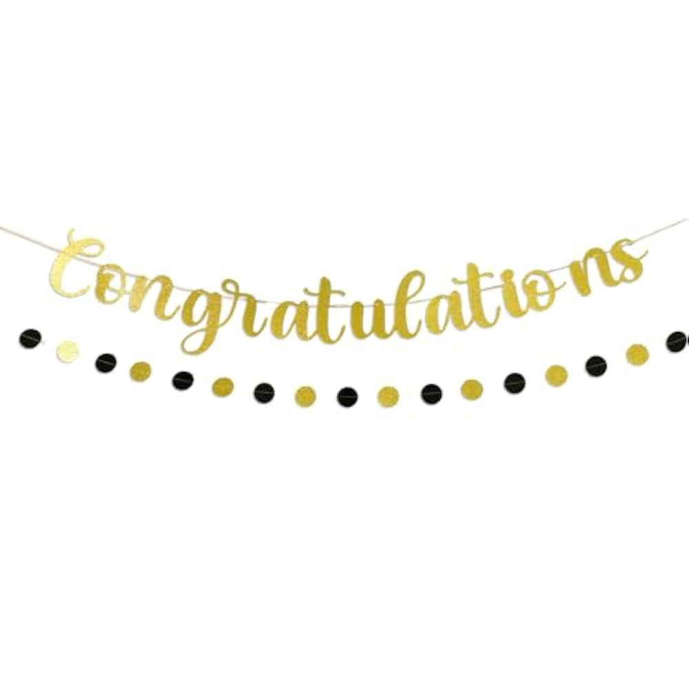 | Effortless Setup, Instant Celebration – This Congratulations Sign Comes Fully Pre-Strung And Ready To Hang, The Congratulations Decorations Eliminating The Need For Complicated Assembly Or Extra Tools, So Even First-Time Decorators Or Solo Organizers Can Set Up In Seconds And Deliver A Professional-Looking Display That The Graduation Banner Impresses Guests At Home, Office, Or Any Congratulations Party Venue. | | Elegant Glitter That Stays Put – Designed With Premium Materials, Each Letter Of The Graduation Banners Is Coated In High-Quality Glitter That Won’T Flake Or Shed, The Congratulations Party Decorations Maintaining A Beautiful Shine Throughout The Event Without Creating Annoying Messes, And The Congrats Decorations Offering A Stress-Free Cleanup—Perfect For Moms, Teachers, Or Event Hosts Managing Multiple Celebration Decorations Under Time Pressure. | | Just The Right Size And Style – With A Well-Proportioned Length And In Dazzling Gold And Black, This Congrats Banner Fits Beautifully Across Fireplaces, Walls, Dessert Tables, And Party Backdrops, The Congratulations Grad Banner Standing Out In Photos While Blending Seamlessly Into Graduation, Retirement, Job Promotion, And School Celebration Themes With Elegance And Ease. | | Sturdy And Reusable For Future Celebrations – Built With Thick, Durable Cardstock And A Strong Pre-Tied Rope, This Congratulations Banner Graduation Design Stays Securely In Place, Resists Bending, And Holds Up Beautifully In Both Indoor And Outdoor Events. Whether You'Re Celebrating With A Congratulations Graduate Banner At School Or A Congratulations Banner Wedding At Home, The Celebration Banner Is Easy To Fold, Store, And Reuse Without Tearing, Warping, Or Fading. | | Versatile And Compliment-Worthy Design – Whether You'Re Using The Congratulations Seniors Banner To Celebrate A Graduation, Work Promotion, Military Send-Off, Or Personal Milestone, This Congratulation Banner Delivers Premium Quality, Effortless Setup, And A Glittery Photo-Ready Finish. The Congratulations Banner For Flower Bouquet Is Also Thoughtfully Designed To Impress With Its Standout Visual Appeal, Versatile Style, And Memorable Charm Across A Wide Range Of Special Occasions. | |