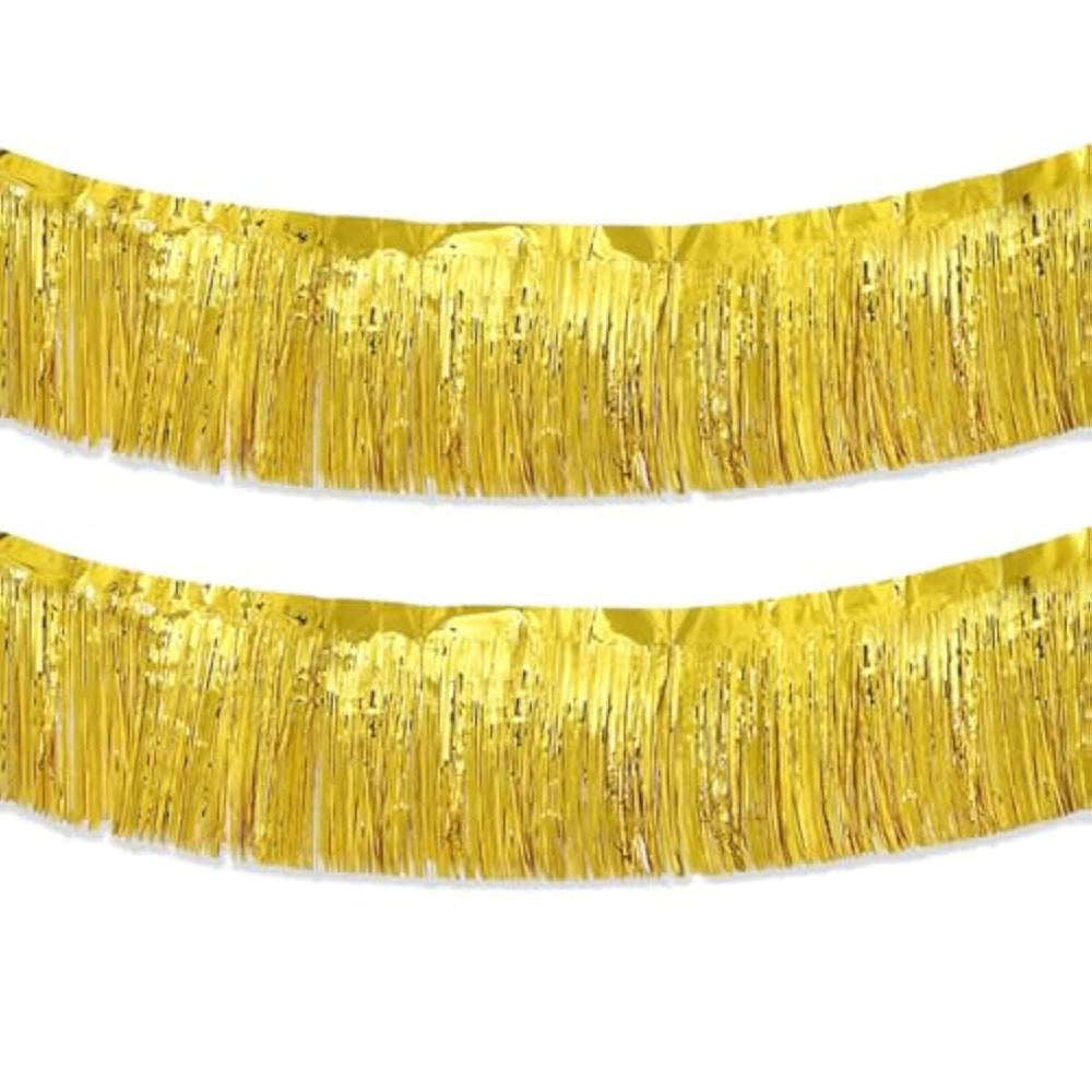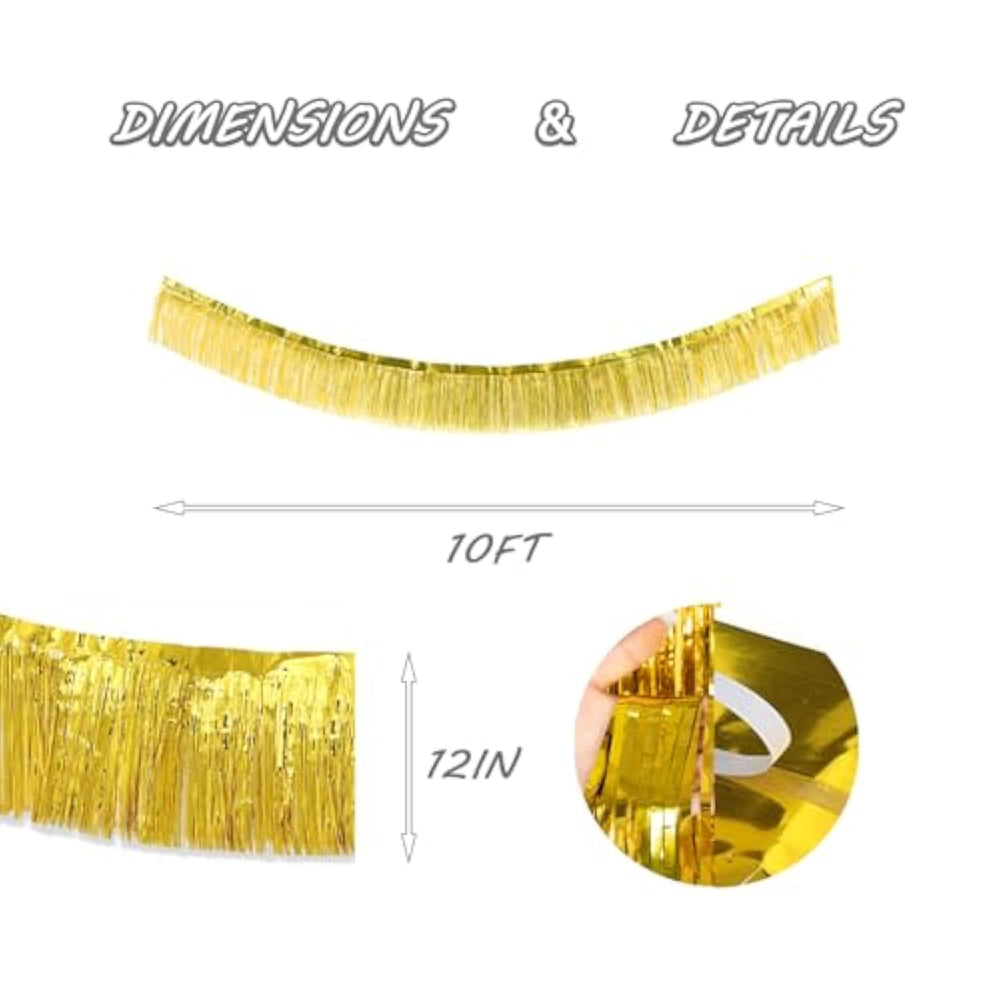 | Size Specification: Shiny Tassel Banner Measure 12Inches X 8.3Ft, 2 Pack. Enough Length For Any Occasion. | | Material: Metal Wreath Made Of Safe And Non-Toxic Pet Material, Wear-Resistant And Corrosion-Resistant, Shiny And Beautiful. | | Easy To Use: Just Peel Off The Double Sided Tape On The Back And Stick It Where You Want, Light Weight, Easy To Use. | | Durable: Party Backdrop Is Unbreakable And Strong, You Can Reuse It With Your Double Sided Tape.The Gleaming Metallic Sheen Allows It To Adorn A Photo Backdrop Or Be Used As A Decorative Banner For A Party! | | Occasions: The Shimmer Curtains Is Perfect For Parade Float, Birthday, Wedding, Bachelorette, Engagement, Bridal Shower, Gender Reveal Party, Baby Shower, Anniversary ,Hollywood Party, Homecoming, Graduation, Halloween, Christmas Or New Year Party Etc. | |