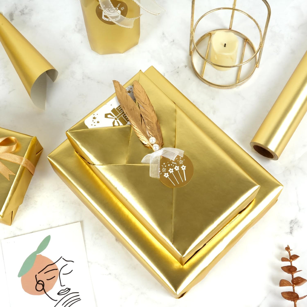| Gorgeous Shiny Gold Color: This Gift Wrapping Paper Roll Is Shimmery Bright And Shiny, It Is Nice With A Glossy Matte Finish, This Elegant Wrapping Paper Will Definitely Elevates The Appearance Of Your Present. Gold Wrapping Paper Roll: This Gold Wrapping Paper Roll Measures 10 M X 43Cm / 32.8 Feet X17 Inches (L) X (W), Large Size Suitable For Wrapping Small To Medium Sized Gifts. You Can Cut It Freely According To Your Requirement. Premium Quality: This Gift Wrapping Paper Is Made Of High Quality Paper, The Texture Is Smooth To The Touch With A Glossed Finish, Gift Wrap Paper With A Decent Thickness And Not Transparent Or Easily Ripped, Sturdy, Cuts And Folds Smoothly. All Occasions: Ideal Beautiful Gift Wrapping Paper For Birthdays, Wedding, Bridal, Baby Shower, Christmas, Holidays, Graduation, Valentine'S Day, Mother'S Day, Father'S Day, Any Occasions. Classy Birthday Wrapping Paper For Both Girls And Boys, Women And Men. Multiple Uses: Shiny Solid Color Paper Can Also Be Used For Flower Wrapping, Home Decor, Party Decoration, Book Wrapping Paper And Any Other Diy Project.