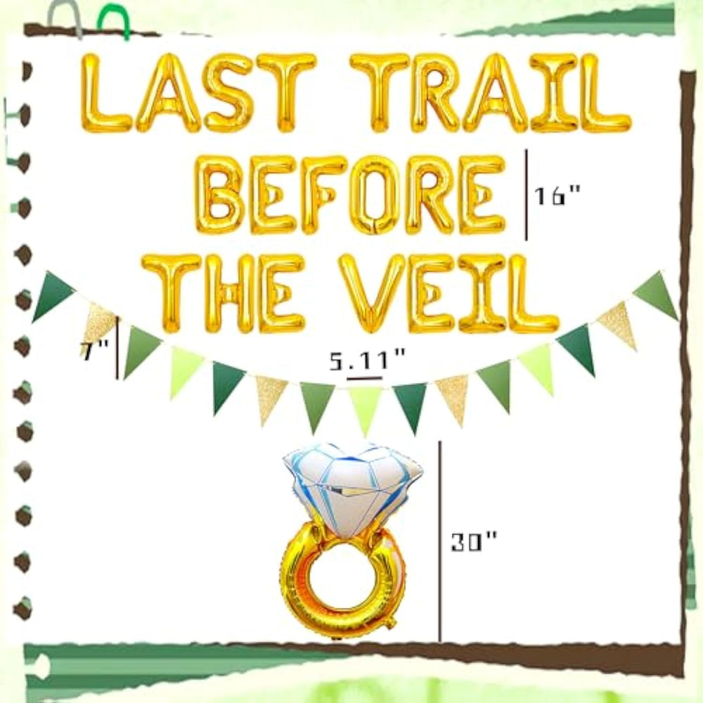 | Our Camp Bachelorette Decorations Set Has It All To Make This A Big Awesome Day | | This Set Of Last Trail Before The Veil Bachelorette Decorations Can Be Use Any Bachelorette Party | | You Will Get: Package Includes 1 X Last Trail Before The Veil Balloon, 1 X Ring Balloon, 1 Set Of Green Yellow Hanging Triangle Party Banner | | Exquisite Design, Beautiful And Funny | | If You Have Any Problem, Please Let Me Know, Your Satisfaction Is Our Pleasure | |