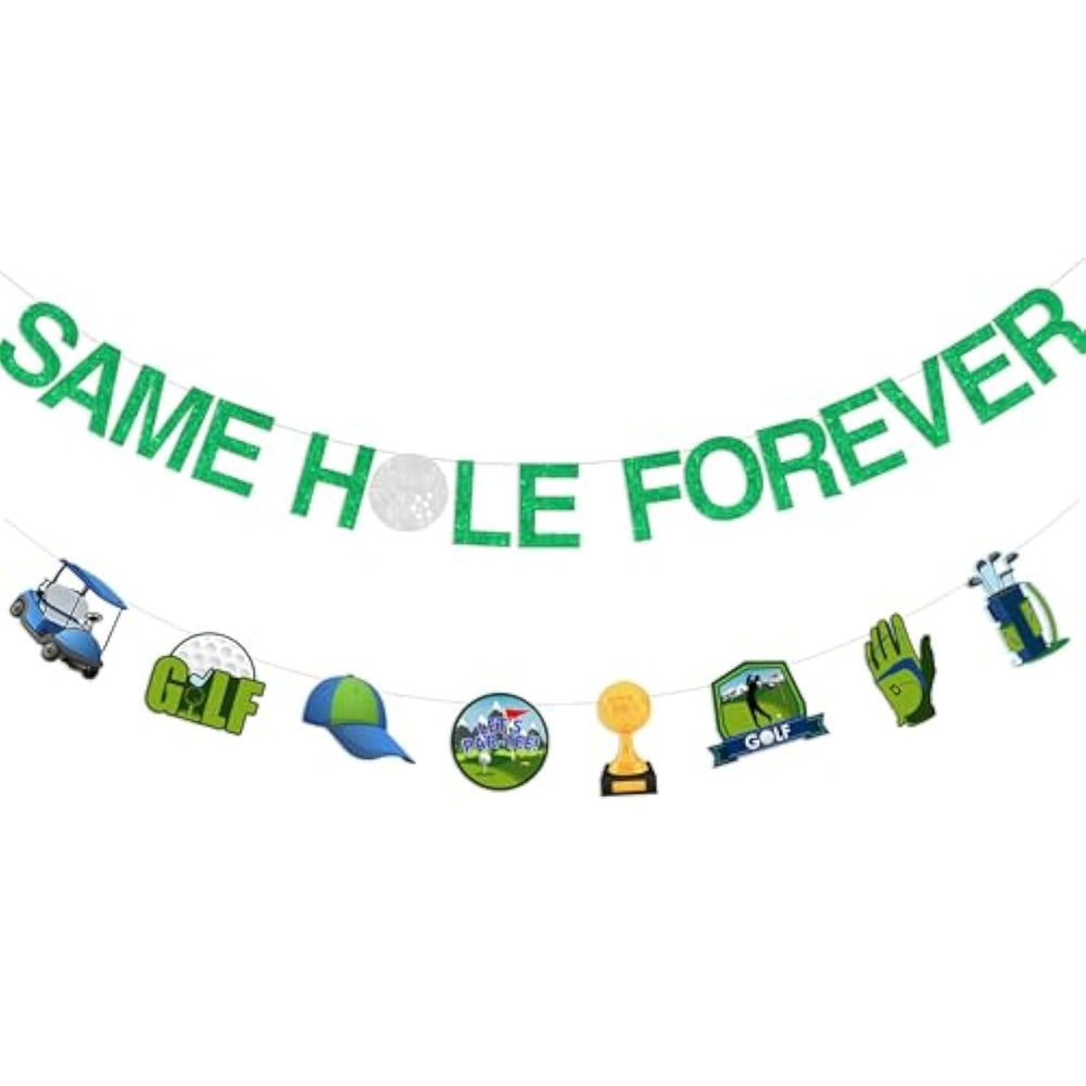 | Golf Bachelor Decorations: Include 1Pc Same Hole Forever Banner And 1Pc Golf Themed Garland. Ideal For Golf Bachelor Party. | | Easy To Assemble: Same Hole Forever Golf Themed Decor Is Not Pre-Strung, It’S Easy To Thread Through Punched Banners With Included Pin And Ribbon And Adjust The Spacing. | | Material: Funny Golf Bachelor Party Banner Set Is Made Of Thick Cardstock, Sturdy And Durable. | | Occasions: Same Hole Forever Decorations Are Perfect For Golf Bachelor Party, Wedding, Etc. | | Golf Bachelor Party Backdrop: Same Hole Forever Banner Set Is A Funny And Eye-Catching Photo Backdrop, You Can Hang It On Anywhere To Add A Strong Atmosphere. | |