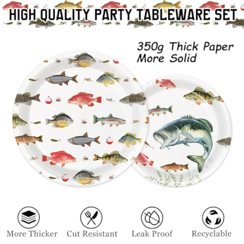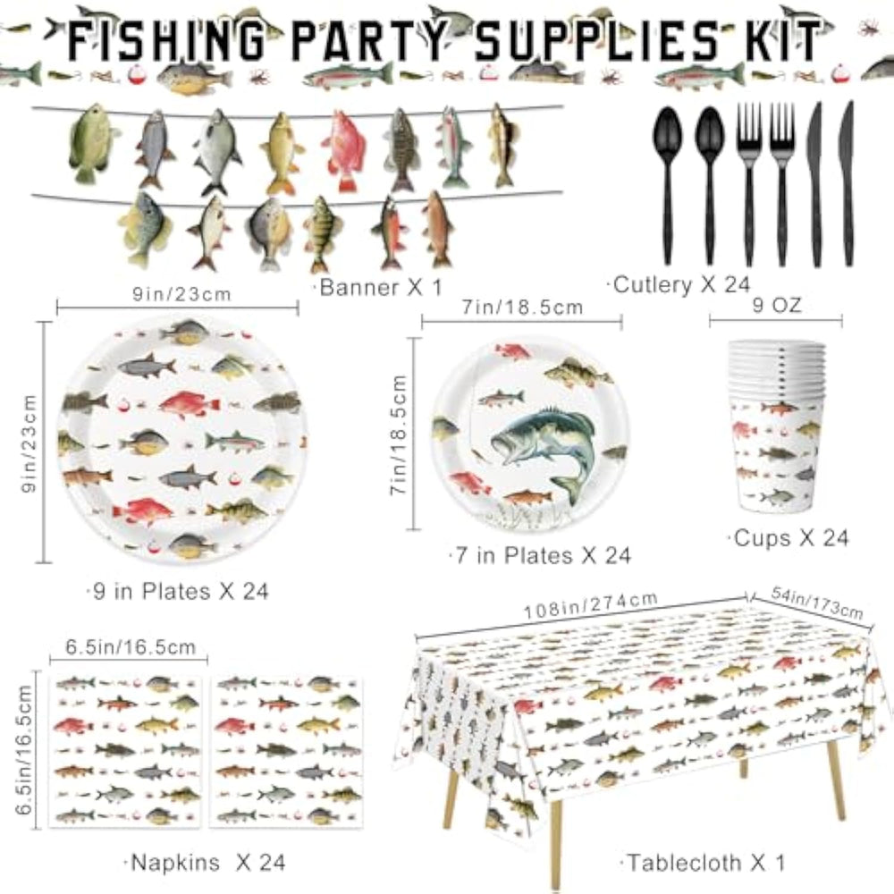 Make your little angler’s celebration extra special with this 170-piece Fishing Birthday Party Decoration Set. Designed with a charming "Gone Fishing" theme, it includes 24 dinner and dessert plates, 24 cups, napkins, forks, knives, and spoons, plus a large waterproof tablecloth and themed banner. Featuring playful fishing graphics like boats, bait, and fish in natural tones, the set brings a fun outdoor vibe to your "O-Fish-Ally One" or fishing-themed party. Made from durable, food-safe materials, this disposable tableware makes cleanup quick and easy so you can focus on the fun!