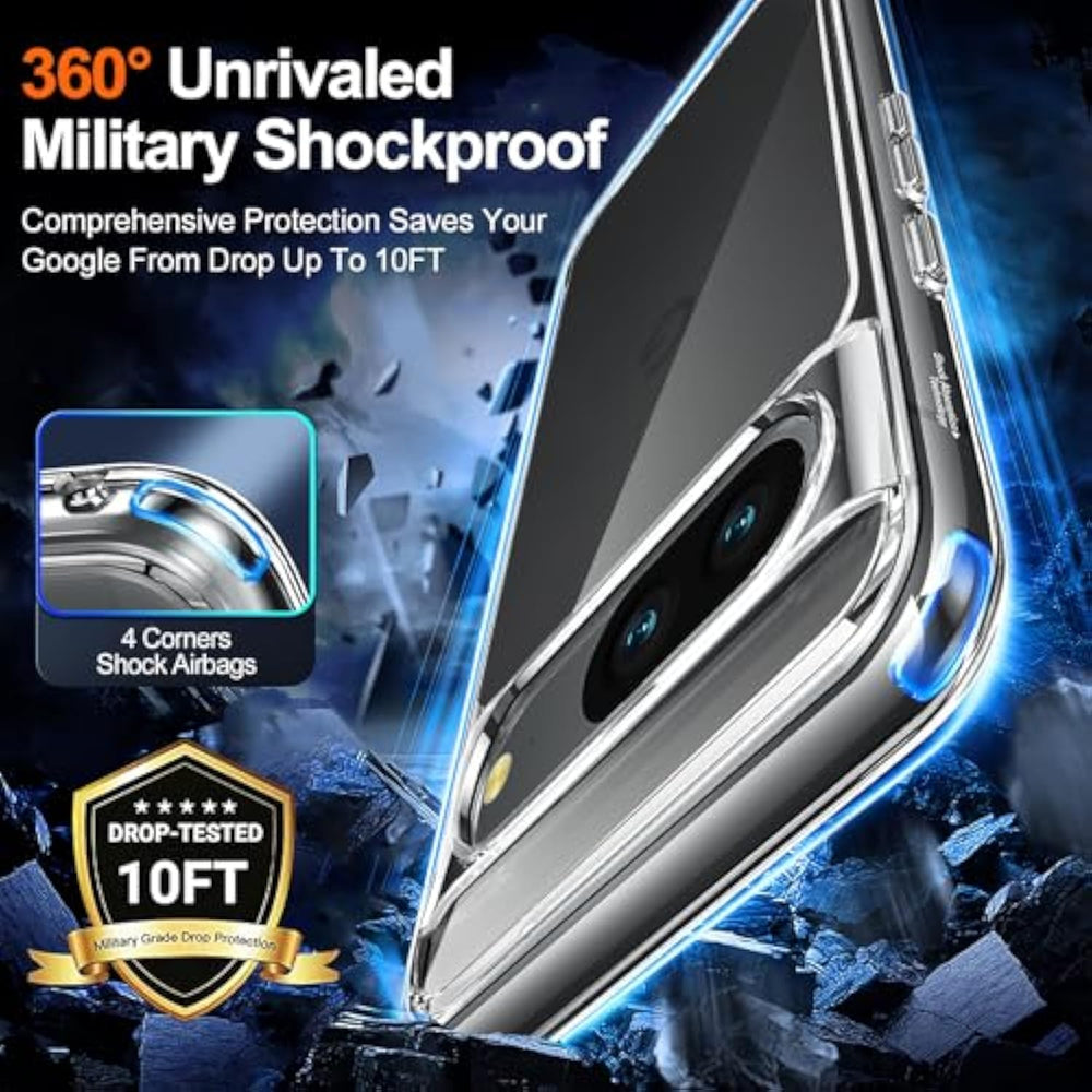 | ???Pixel 8 Case?:Only For Google Pixel 8. Supporting Wireless Charging. | | ???Crystal Clear Never Yellow?:Be Made Of Premium Ultra-Clear Tpu Material With 0.1% Blu-Ray Molecule Injection, Pixel 8 Transparent Case Ensures 100% Light Transmittance, Fully Showcases The Google Original Color. The Nano Antioxidant Layer Effectively Resist Stains And Sweat, Keeping The Case Clear Like Diamond Longer Than Others. ???Slim Aesthetic?: Case Is Slim And Slides In And Out Of Pockets Easily. The Pure Electroplated Buttons Is Durable And Can Achieve Smooth Click Response. | | ???2Pcs Screen Protectors?:Packed With 2X 9H Hd Tempered Glass Screen Protectors. It Has Strong Light Transmittance, While Protecting The Screen Of Google Pixel 8 Against Any Scratches, It Can Also Flawlessly Maintain The Original Image Resolution Of The Screen. | | ???10Ft Military Grade Guard?:Based On 5000+ Extreme Drop Resistance Tests, The Google Pixel 8 Cases' Durability And Sturdiness Surpass Most General Phone Cases. Furthermore, The Shockproof Pc Back And The 4 Airbag Cushions Increase Its Durability And Protect Your Phone Against Everyday Drops And Bumps. ???Camera Screen Protection?:2.5Mm Offset Border Over The Camera Opening Prevents The Lens From Being Scratched. 1Mm Bezel Over The Screen Keeps Screen From Damage. | | ???Professional Support?:We Provide 1 Year For Google Pixel 8 Case. If You Encounter Any Problems While Using Our Product, Please