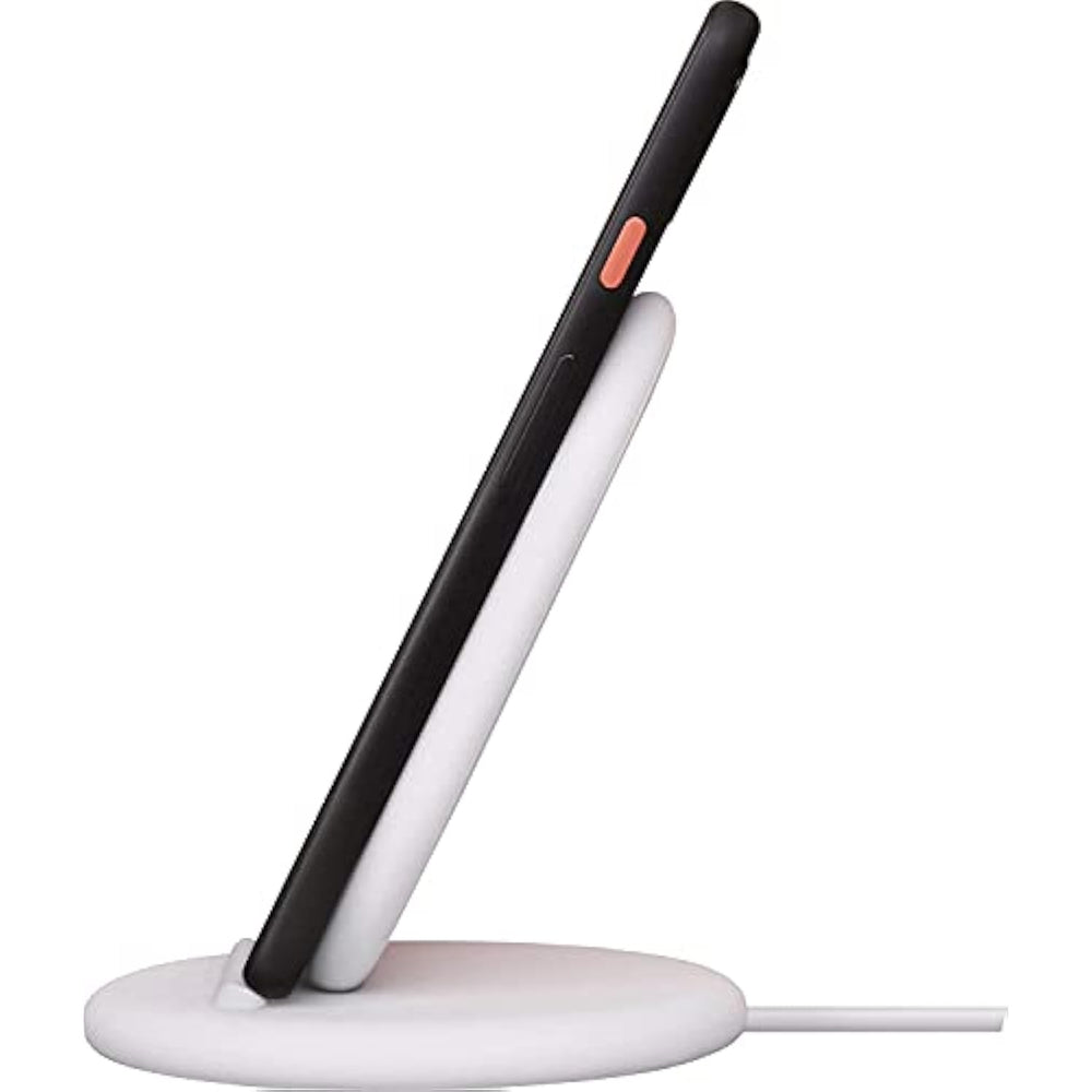 | Fast, wireless charging. Charge your iPhone wirelessly with Google Stand. | | Google Stand is Compatible with iPhone 12 Pro, iPhone 12 Pro Max, iPhone 12 mini, iPhone 12, iPhone 11 Pro, iPhone 11 Pro Max, iPhone 11, iPhone SE (2nd generation), iPhone XS, iPhone XS Max, iPhone XR, iPhone X, iPhone 8, iPhone 8 Plus And all Qi compatible devices | | The Google Charger maintains compatibility with Qi charging, so it can be used to wirelessly charge your iPhone 8 or later, | | What's in the box: Google Stand Charger, 1.5m USB-C to USB-C cable and power adapter | | For optimal charging, pair with the 20W USB-C Power Adapter (sold separately). | |