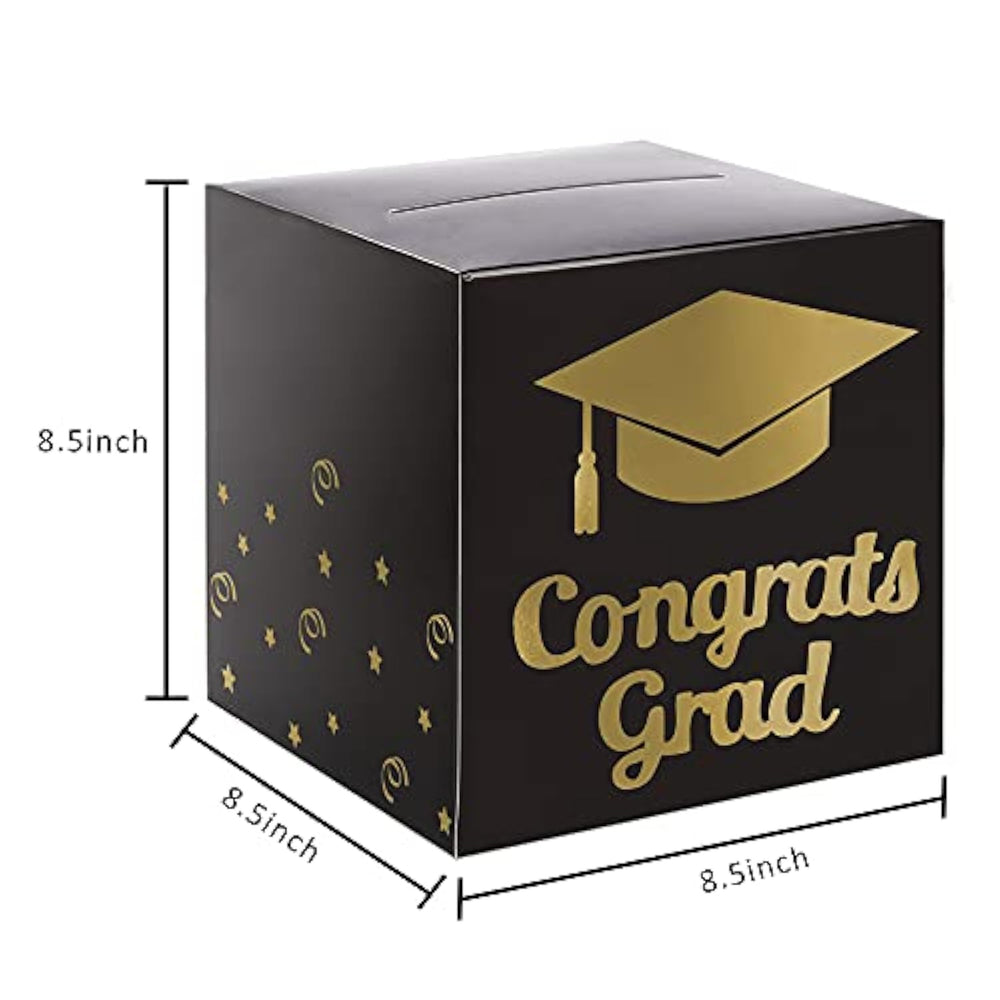 | What'S Included: You’Ll Receive 1 Decorative Graduation Card Box | | Attractive Design: The Graduation Card Box Is Made Of Premium Paper. And The Box Is Designed With Classic Graduation Elements And Color. Very Impressive | | Dimensions: Our Graduation Card Box Holder Measures 8.5 X 8.5 X 8.5 Inches, The Top Slot Measures 5.9 X 0.2 Inches; It Can Carry Lots Of Cards | | Easy Assembly: The Box Is Foldable Design And Folded For Delivery Making Sure The Box Are Well Protected. You Can Easily Assemble Then | | Versatility: Use As Intended For Reception To Collect The Gift Card, Wish Card, Encouragement Card Or Even Lucky Money, It Can Also Be Assembled For Party Decoration | |