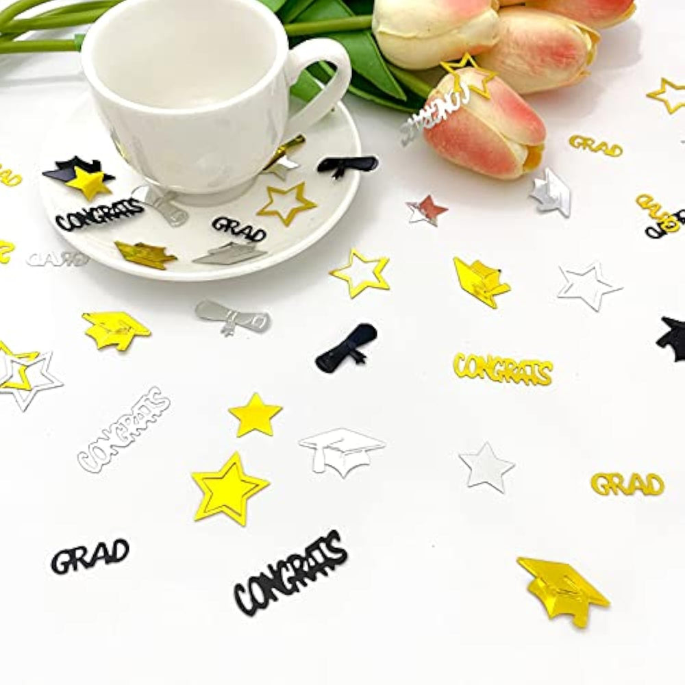 | ?? It'S Time To Shine, Graduate! Celebrate Your Happiness With This Wonders Confetti Which Will Be A Perfect Addition To Your Graduation Decorations Party! | | ?? Great Party Favor: Spread The Table To Add Atmosphere To The Party, Throwing In The Air, Sprinkling On The Floor, Or Use Them For Scrapbooking Or Crafts, Fillers For Clear Gift Boxes/ Bottles Or Invitation Cards As Decors. | | ?? Product Specifications: Color: Gold Black Silver. Size: Congrats: 1.3X0.4Inch, Grad: 0.8X0.3Inch, Cap: 1.0X0.7Inch, Diploma: 1.0X0.6Inch, Star: 0.9Inch/0.5Inch, Champagne: 1.4X0.4Inch, Glass: 0.9X0.3Inch. Quantity: 1.5Oz/45G, 1200Pieces. | | ?? High Quality: Made Of Pvc, Made From Foil Embossed To Show Details Of The Designs, Keep Its Own Shape Well And Is Durable Enough For Next Time Using,Thicker And Heavier Than Tissue Paper Confetti, Waterproof,These Confetti Surface With Bling Bling Surface, Shiny Vibrant Color Will Add More Festival Atmosphere. | | ?? Quality Service: Very Lovely And Beautiful Confetti. If You Are Not Satisfied With Our Products, Please