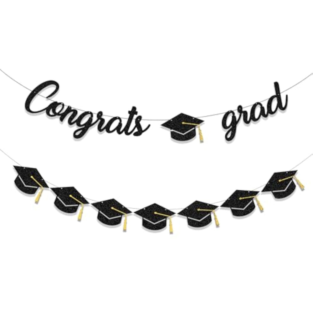 | ??Package : 1Pcs Congrats Grads Banner,1Pcs Graduation Caps Banner. | | ??Easy To Use : Both Banners Are Pre-Strung. | | ??Size : Both Banners Ribbon Are 2.5M-8.2Ft Long. | | ??Material?Both Banner Are Made Of Thickened Glitter Cardstock, Glittering And Sturdy. | | ??Thank You For Choosing , If For Any Reason You Are Not Happy With Our Products, Please