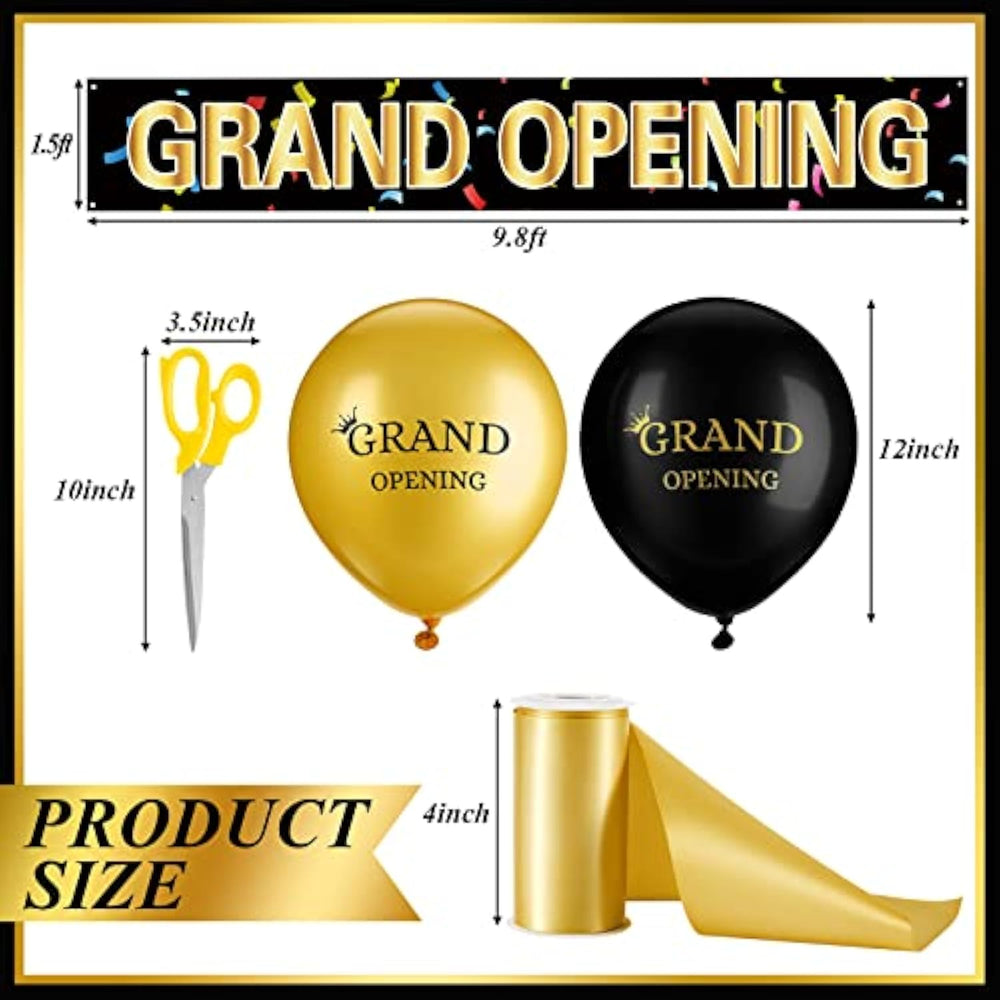 | Satin | | Grand Opening Ribbon Cutting Set: You Will Get 1 Piece Of Grand Opening Banner With 4 Ropes, 1 Piece Of Scissors With Yellow Handle, 20 Pieces Of Balloons In Black And 20 Gold Balloons, 2 Rolls Of Balloon Tie And 1 Roll Of Gold Ribbon Cutting And 4 Pieces Of Gold Bow, The Beautiful And Reasonable Combination Can Easily Meet Your Needs | | Ideal Ceremonial Decoration: The Opening Celebration Banner Is Printed With The Words [Grand Opening] On The Surface, With Colorful Confetti Patterns, Is A Jubilant, Lively Sign, And It Will Attract Guests' Attention And Leave You With An Unforgettable Opening Experience | | Reasonable Size: Our Grand Opening Sign Banner Measures About 46 X 300 Cm/ 1.5 X 9.8 Ft And Is Large Enough To Catch The Eye At Your Ceremony, While Opening Ribbons Are About 10 X 450 Cm/ 4 Inch X 15 Ft, Long Enough For You To Use, Balloons Are 12 In When Blown Up And Scissors Are 10 Inches Long | | Trustworthy And Serviceable: Our Grand Opening Banners In The Inauguration Party Supplies Are Made Of Quality Polyester Material, Soft And Lightweight, Available For You To Hang On Your Wall Or Door, Printed Clearly, Not Easy To Fade Or Deform, And With Latex Balloons, You Can Use Them With Confidence | | Wide Range Of Use: The Combination Of These Grand Opening Decorations Are Reasonable For You To Use In Many Occasions, Such As The Main Opening Of A Business, Store Or Charity Event, Inauguration And Other Occasions To Make Your Grand Opening As Memorable As Possible | |