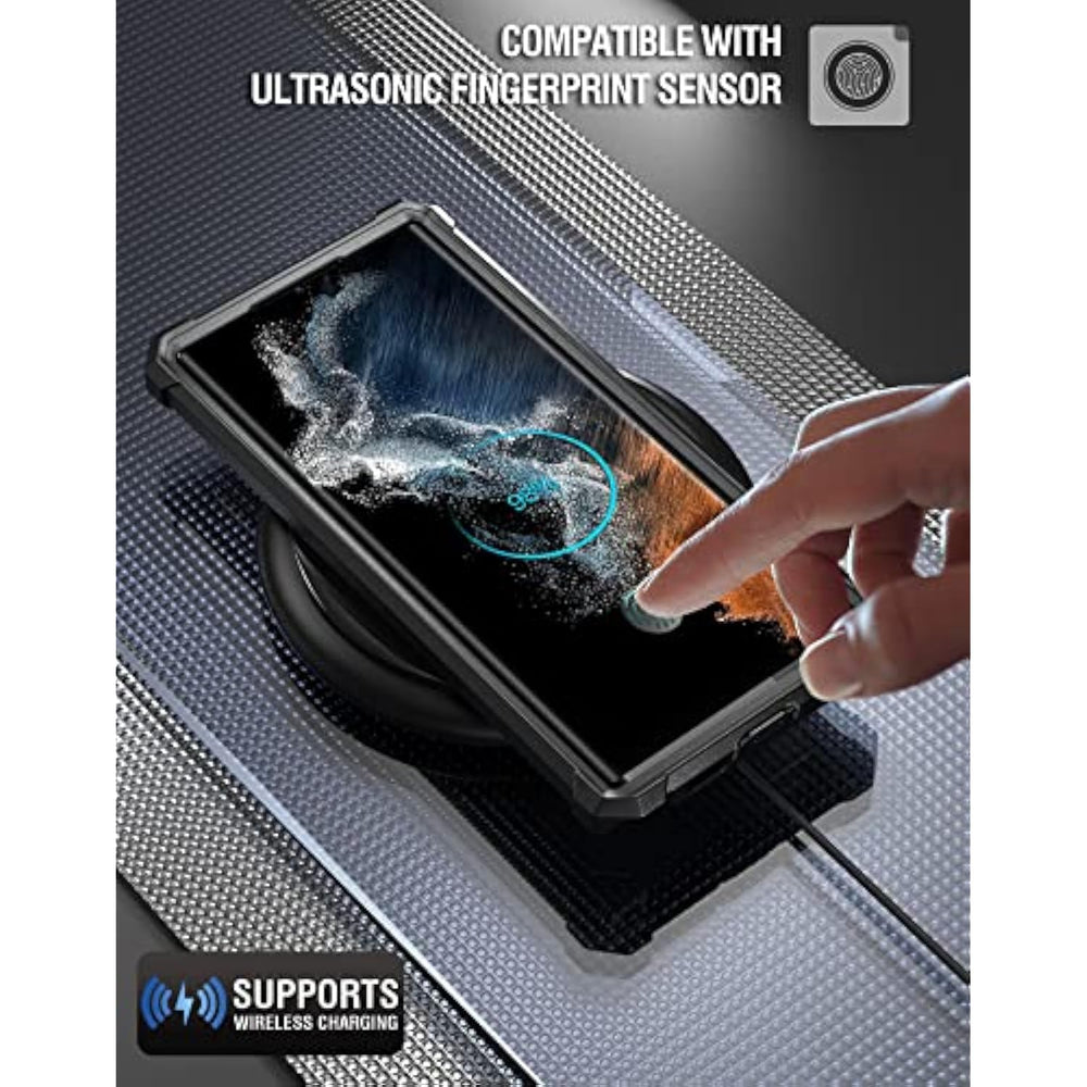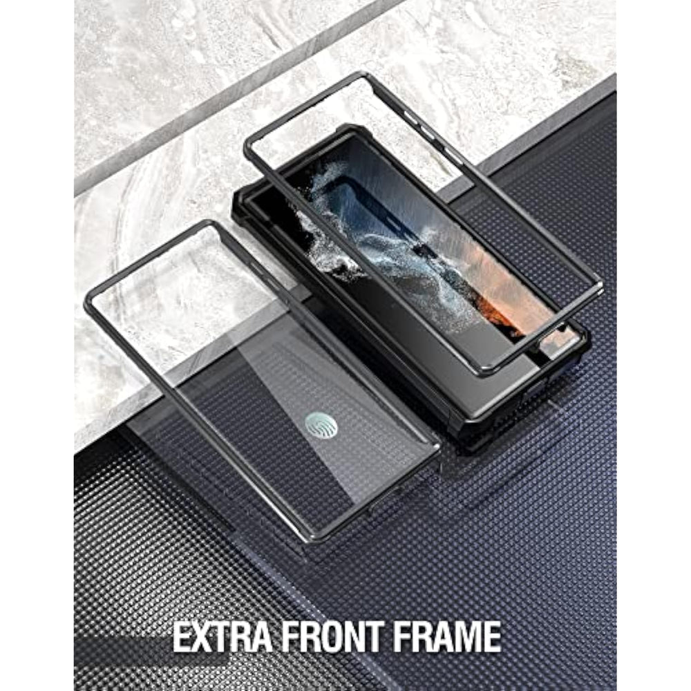 | Military Grade Drop Tested Rugged Case Compatible With Galaxy S22 Ultra 5G 6.8 Inch - Shockproof/Drop-Proof/Impact Resistant/Scratch-Proof. | | Safe Screen Protection - Extra Raised Lips And Corners Of The Front Hard Frame Provide Super Protection From Drops, Keep Your Screen Safe. | | Shock Absorbing - Impact Resistant Tpu Lining Around The Polycarbonate Case Provides Shock Absorbing Bumper Protection For The Corners And Enhances Grip To Prevent Sliding. | | Extra Front Frame - For People Who Don'T Like To Use Built In Screen Protectors, Has Included An Extra Front Frame To Use With Your Own Tempered Glass. | | Built-In-Screen Protector With Fingerprint Stamp - Make Sure Remove Any Air Bubbles Between Fingerprint Scanner And Fingerprint Stamp. Please Carefully Read Fingerprint Stamp Tips On The Description Section And Watch Installation Guide Video, Follow Steps For Smooth Installation. | |