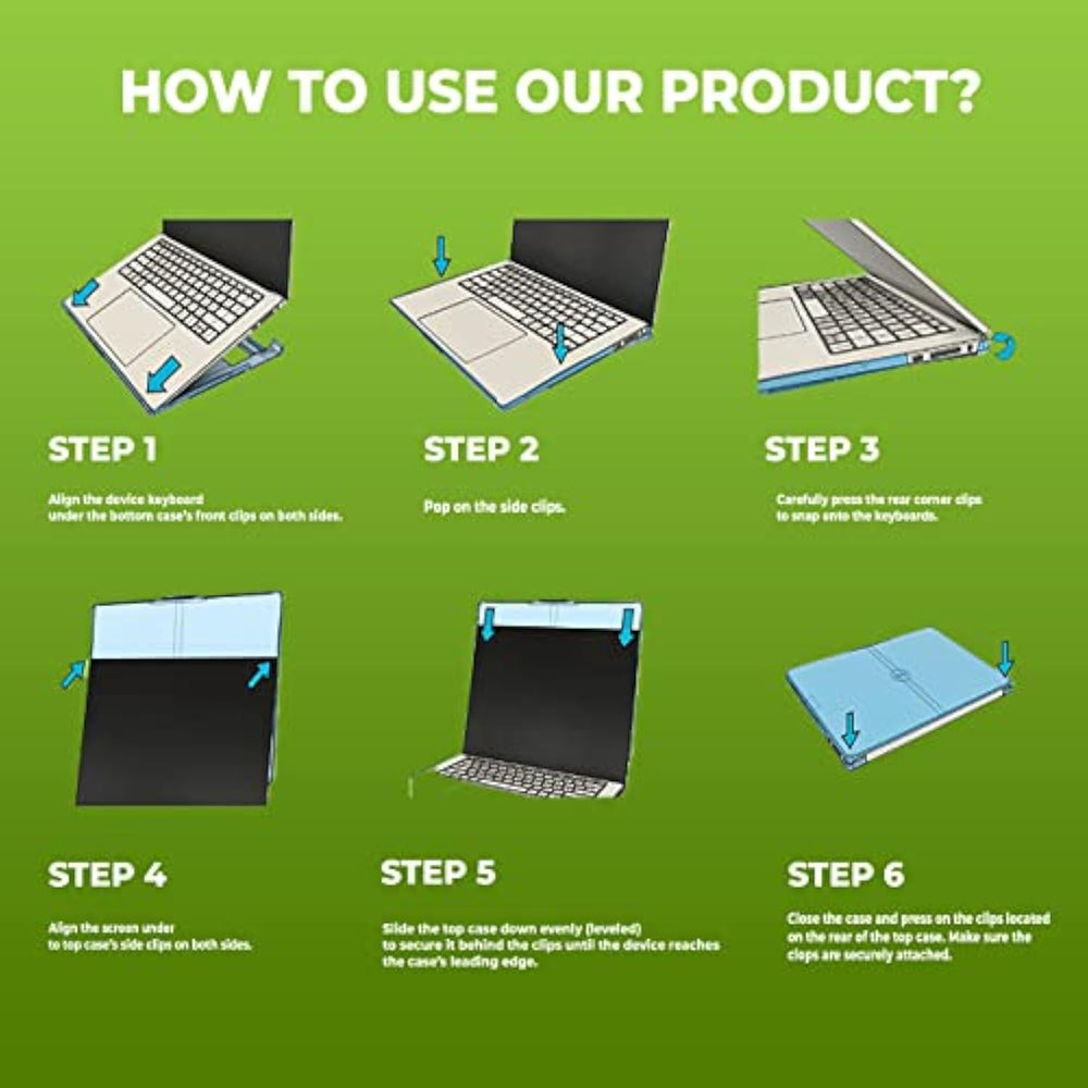 | COMPATIBILITY - This hard shell laptop case is custom-made only to fit the following devices: *HP Chromebook 11 G8 EE, *HP Chromebook 11A G8 EE, *HP Chromebook 11 G9 EE, *HP Chromebook 11MK G9 EE. Incompatible with other device models. Please don't hesitate to reach out if you need further assistance. | | BUILT FOR KIDS - Offers a 2-piece case (Top and Bottom shells) with reinforced air-cell corners flex made with rugged, co-molded thermoplastic polyurethane (TPU) that offers maximum shock absorption. | | EMBELLISHMENT FRIENDLY - Designed with clear dual material top and bottom piece that allows for easy asset management and customization of the device. | | CHARGE CART FRIENDLY - Works in most charging carts but is ideal for take-home device programs. | | SNAP IN INSTALLATION - Installation of the device to the case is easy because of its snap on feature. Scan packaging QR for installation instructions. | |