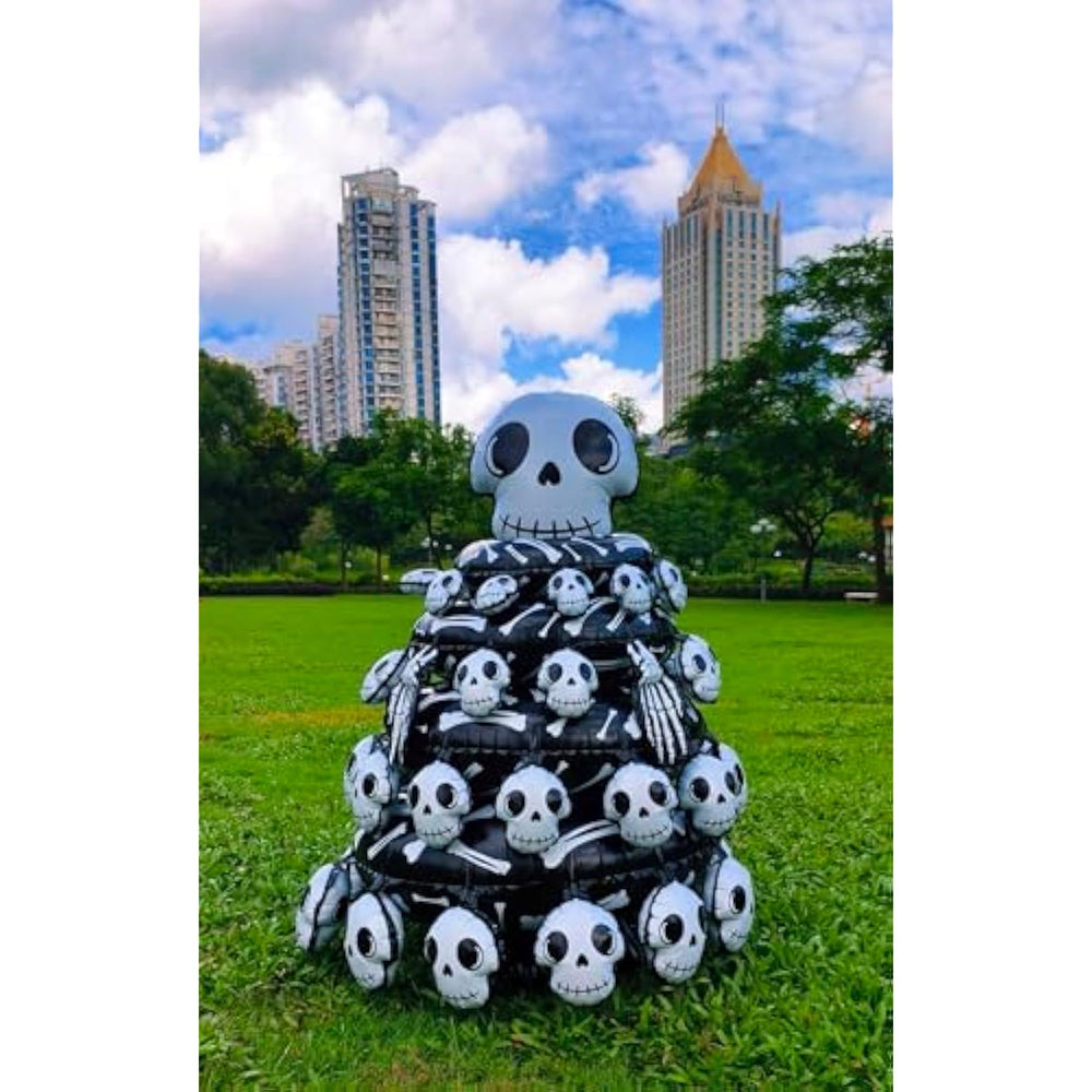 This Halloween Balloon Decoration includes a 43.3-inch skull-shaped foil mylar balloon with a self-sealing valve, designed to last longer than regular balloons—typically over a week. Perfect for creating a spooky atmosphere at Halloween parties, this durable balloon can be filled with helium or air to add a striking centerpiece or backdrop to your festive decorations.