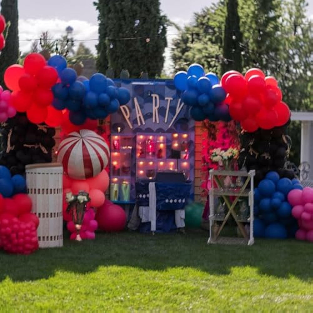 This Halloween balloon set features 10 matte orange balloons, 10 matte black balloons, 10 lemon green balloons, 7 metallic purple balloons, 6 orange pumpkin-printed balloons, 7 bat-printed balloons, and 1 silver ribbon, providing everything needed to create a playful and festive party display. Made from premium latex, these balloons are durable, maintain their shape, and can be inflated with air or helium for versatile Halloween décor. The bold color combination of orange, black, green, and metallic purple adds a striking and eye-catching touch to any celebration, perfect for spooky Halloween setups or themed birthday parties. Easy to assemble, they work well for arches, garlands, or table centerpieces, allowing you to mix large and small balloons for a balanced and visually appealing arrangement.