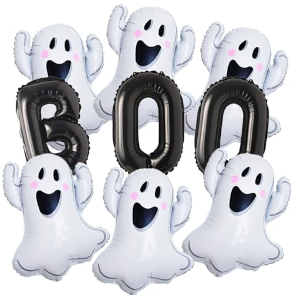 This Halloween balloon set includes 9 party balloons with 6 white spooky designs, 3 black BOO letter balloons (16 inch), a roll of ribbon, and a straw for easy inflation. Made from high-quality foil mylar with a self-sealing design, these balloons are simple to use and add a fun, festive touch to your event. Perfect for Halloween parties, birthdays, baby showers, weddings, haunted houses, or spooky-themed gatherings, they can be hung on ceilings, windows, or in gardens and also serve as great photo backdrops or props to make your celebration more memorable.
